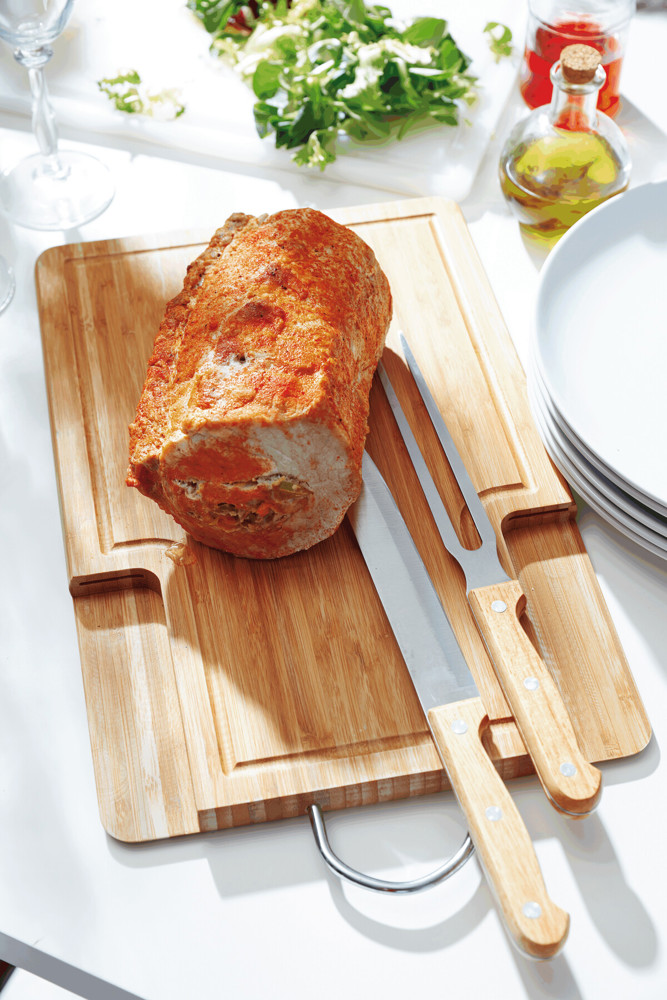 Schneidebrett BAMBOO-CUT: aus Bambus, inkl. Tranchierbesteck, Messer und Gabel aus Edelstahl mit... mehr