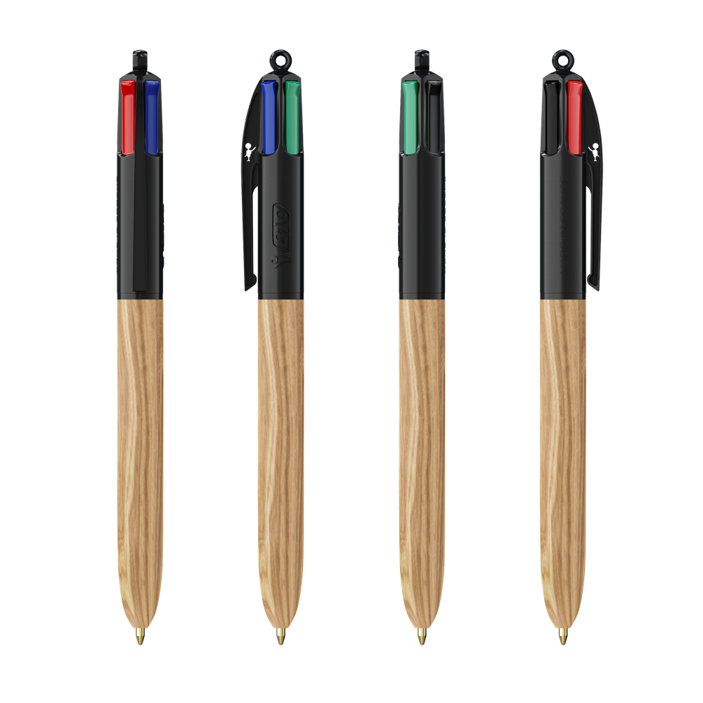 Unser ikonischer BIC® 4 Colours Kugelschreiber mit Holzmaserungseffekt. Lassen Sie sich von der spektakulären Holzoptik beeindrucken! Unser legendärer BIC® 4 Colors® ist jetzt nachhaltiger - mit 13 % weniger Kunststoff im oberen Bereich!