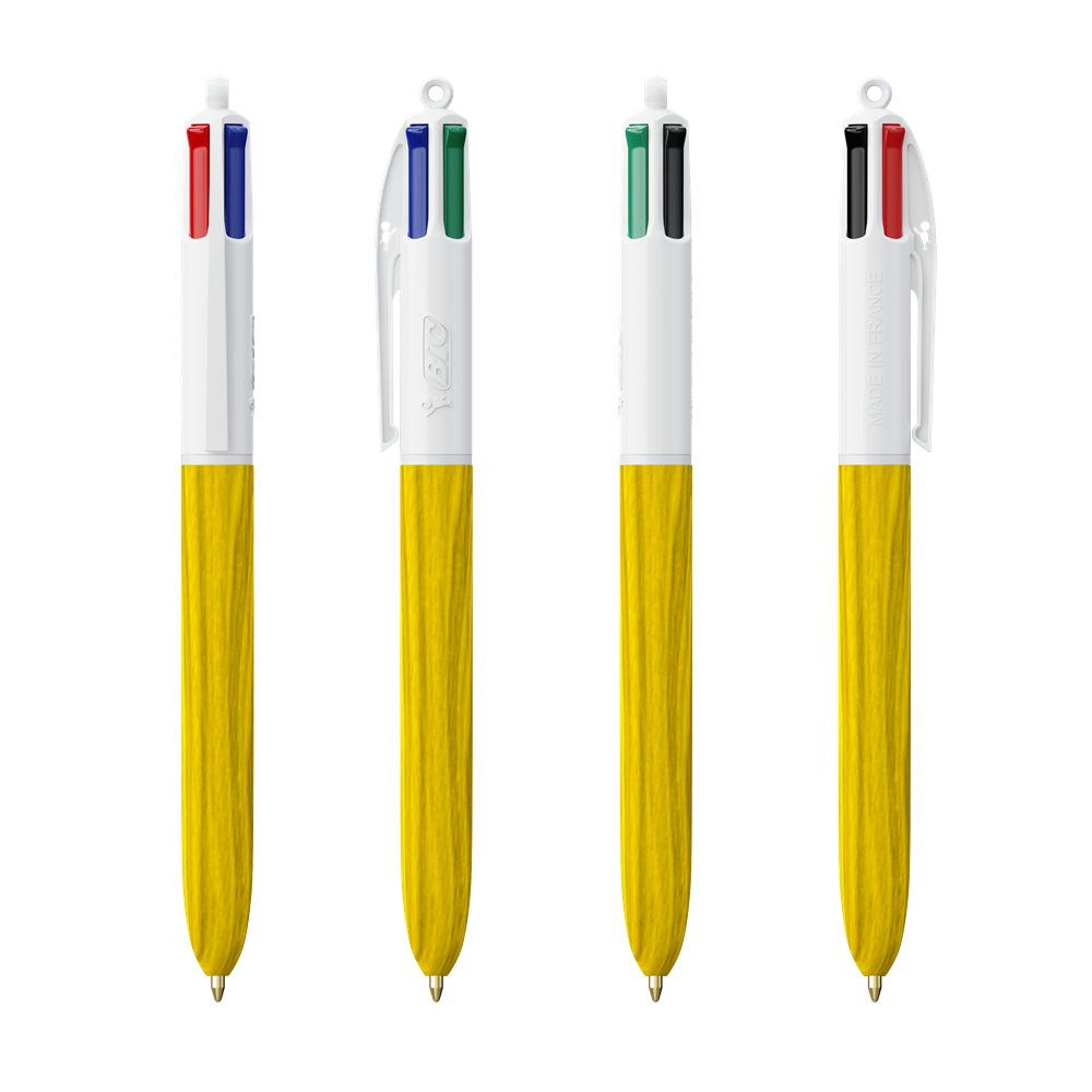 Unser ikonischer BIC® 4 Colours Kugelschreiber mit Holzmaserungseffekt. Lassen Sie sich von der spektakulären Holzoptik beeindrucken! Unser legendärer BIC® 4 Colors® ist jetzt nachhaltiger - mit 13 % weniger Kunststoff im oberen Bereich!
