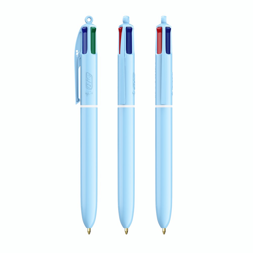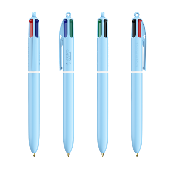 Entdecken Sie unseren neuen BIC® 4 Colours® Pastel! Seien Sie kreativ mit den neuen trendigen Pastellfarben - für einzigartige Designs mit einer verträumten Bildsprache! Unsere BIC® 4 Colours® Kugelschreiber haben eine durchschnittliche Schreiblänge von 8.000 m (SGS-Tests - durchschnittliche Schreiblänge für blaue, schwarze, rote und grüne Tinte). Unser legendärer BIC® 4 Colours® wird immer nachhaltiger, jetzt mit 13% weniger Plastik im Oberteil!