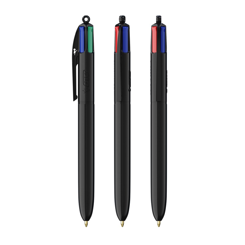 Einfach, zuverlässig, einfallsreich. Vier verschiedene Tintenfarben in einem Kugelschreiber: Blau, Schwarz, Rot und Grün! Ein kultiger Kugelschreiber, der immer in Mode bleibt. Vollfarbdruck in höchster Qualität - mit BritePixTM Digital. Unser legendärer BIC® 4 Colours® wird nachhaltiger, jetzt mit 13 % weniger Kunststoff im oberen Bereich! Bedenken Sie, dass Sie Ihre Bestellung zwischen Juni 2023 und Juni 2024 mit dem Standardclip oder dem neuen Clip erhalten, der weniger Kunststoff enthält.