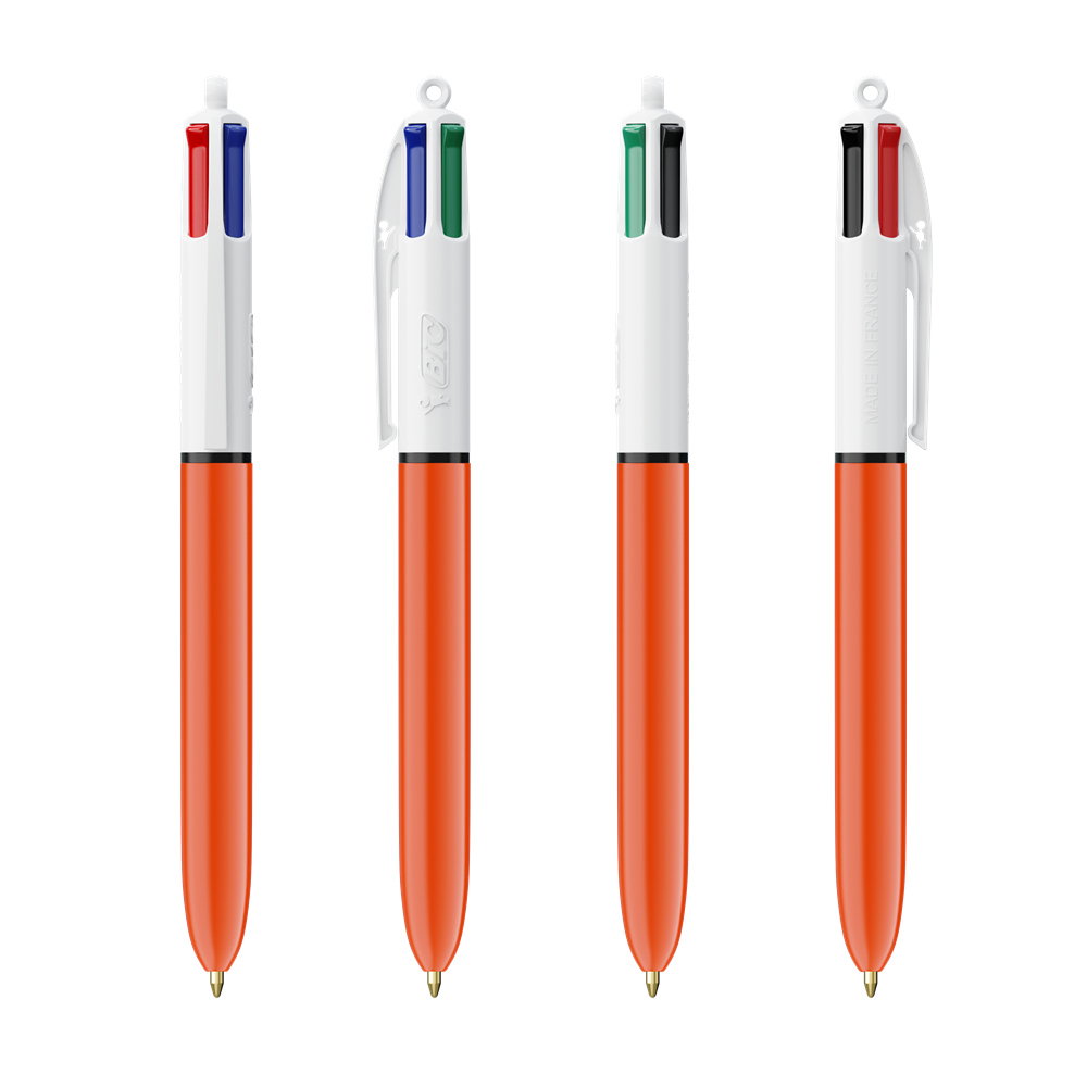 Farbenfrohe Version mit feiner Strichstärke. In vier Standard-Tintenfarben erhältlich: Blau, Schwarz, Rot und Grün. Vollfarbdruck in höchster Qualität - mit BritePix Digital. Unser legendärer BIC® 4 Colors® ist jetzt nachhaltiger, mit 13 % weniger Kunststoff im oberen Bereich!