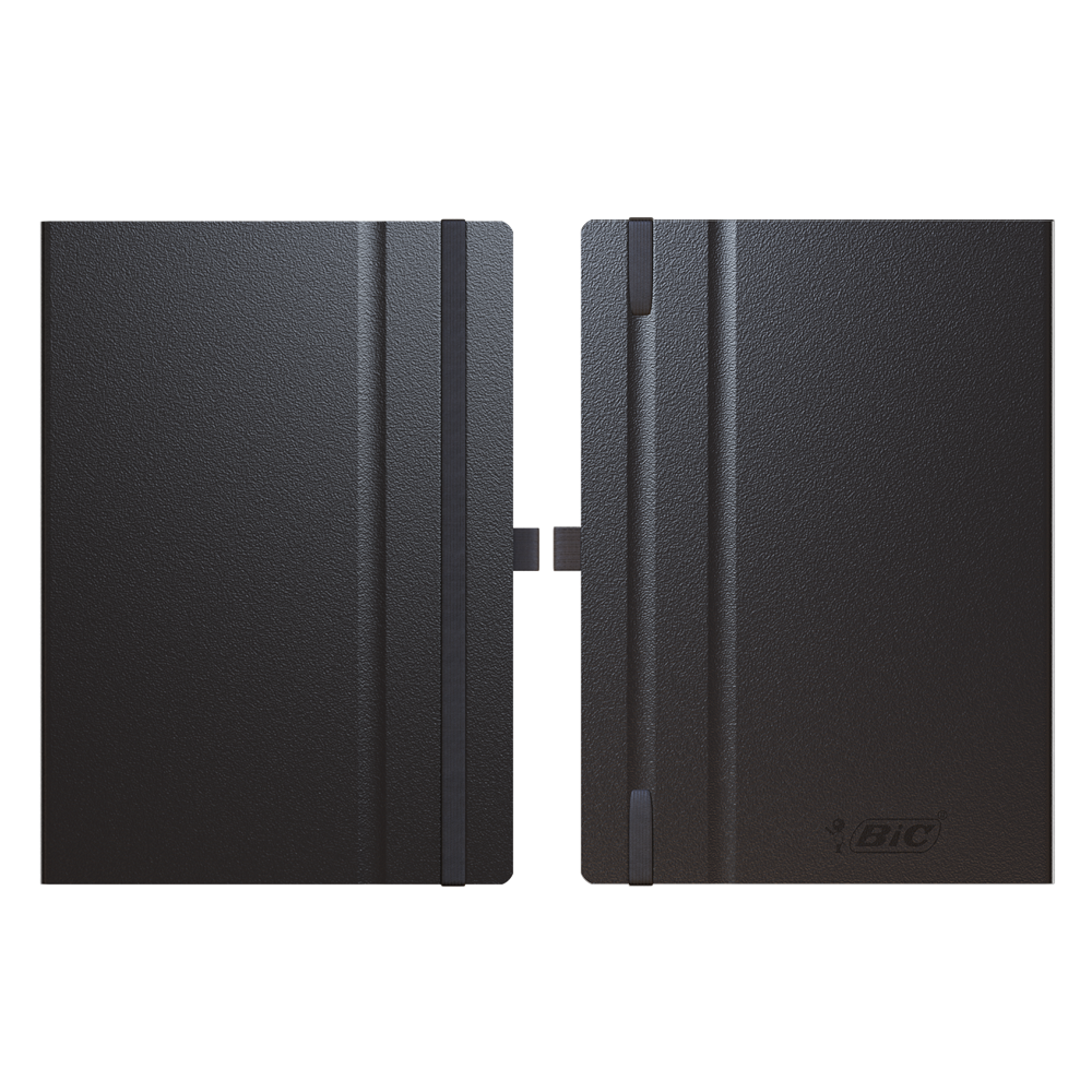 Das BIC® Partner A5 Hardcover-Notizbuch mit linierten Seiten hat einen speziellen Einband, der gleichzeitig Stabilität und Flexibilität vereint und ein einfaches seitliches Einsehen eines Teils der Innenseiten ermöglicht, ohne es vollständig öffnen zu müssen. Dieses Notizbuch wird zu einem zuverlässigen Reisebegleiter, perfekt zum Schreiben, Festhalten von Gedanken und Aufschreiben von Notizen. Alle BIC-Notizbücher werden in Italien aus FSC-zertifiziertem Papier hergestellt.