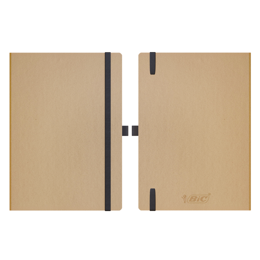 Das BIC® Partner A5 FruitCover-Notizbuch mit linierten Seiten aus Recyclingmaterial hat einen Umschlag, der nicht nur anpassungsfähig und widerstandsfähig ist, sondern auch zu 39 % aus Apfelabfällen besteht. Dieses Notizbuch hat die perfekte Größe, um es überallhin mitzunehmen, und ist ein zuverlässiger Reisebegleiter, ideal zum Schreiben, Festhalten von Gedanken und Aufschreiben von Notizen. Alle BIC-Notizbücher werden in Italien aus FSC-Papier hergestellt.