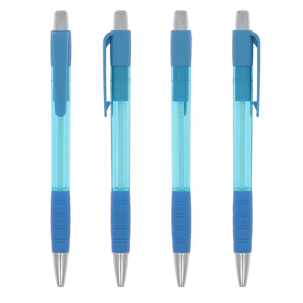 Beliebter Druckkugelschreiber mit farbig gefrostetem Schaft, farbigen Verzierungen und glänzenden Chromakzenten.