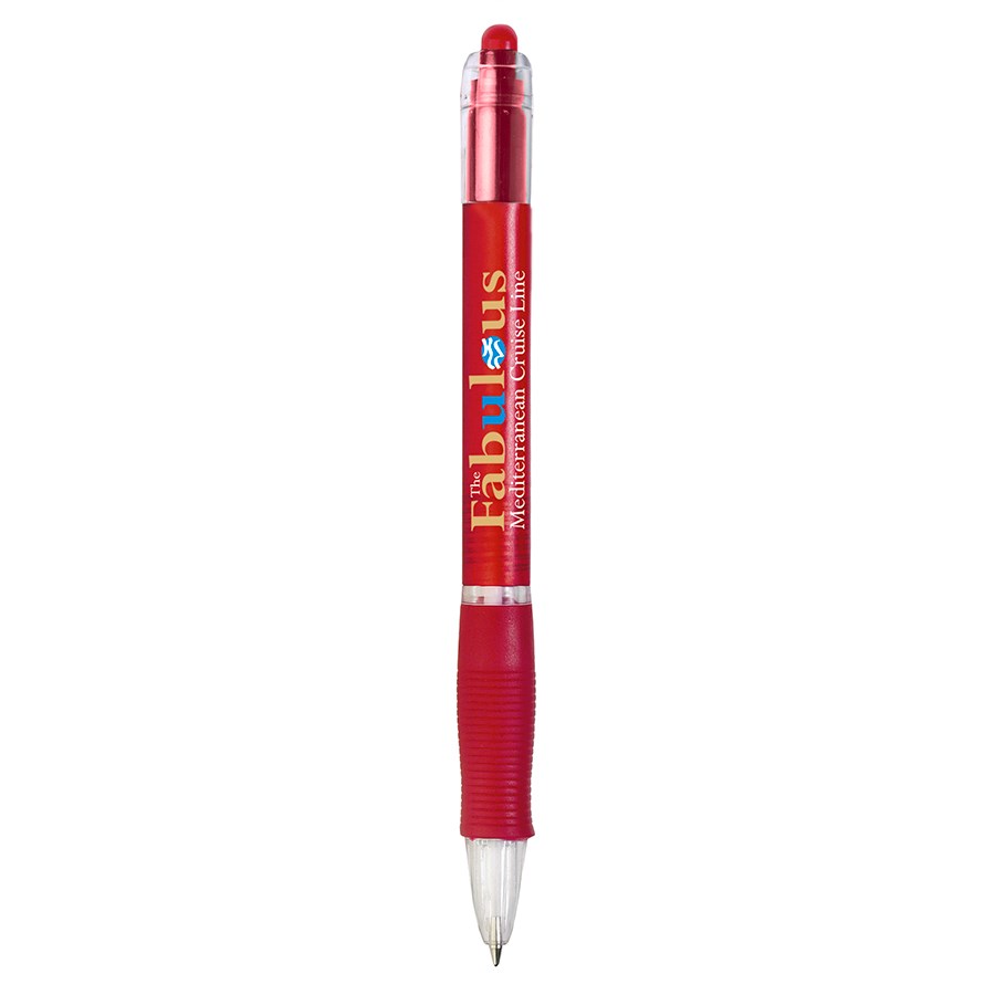 Farbig gefrosteter Schaft mit softer, gummierter Griffzone und transparenten Verzierungen.