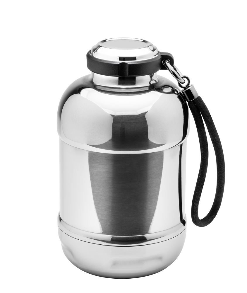 Handpolierte Edelstahltrinkflasche mit Trageschlaufe in edlem Geschenkschuber. Material: V4A innen, V2A außen, PP, Acryl Volumen: 685 ml Gewicht: 371 g Maße: Ø 101 x 178 mm