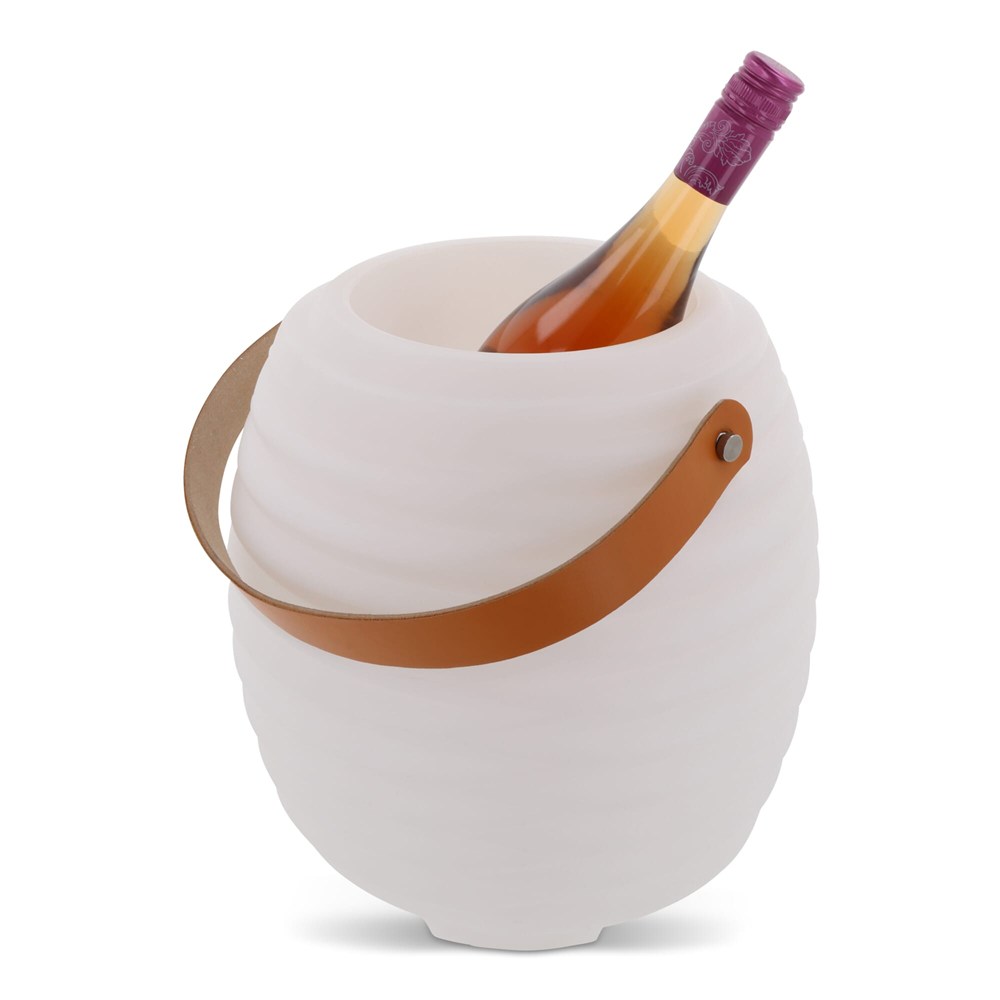 Genießen Sie ein Getränk, die Musik und die Gesellschaft der anderen an einem lauen Sommerabend oder wärmen Sie sich drinnen, wenn es kühl ist. Es passt problemlos eine Flasche Wein oder 4 Dosen hinein. Die CoolLux kann auf dem Band personalisiert werden.