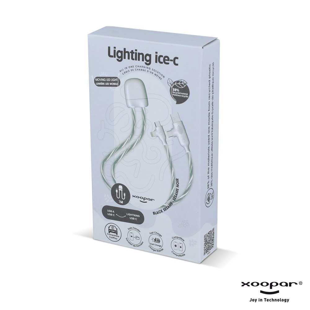Die Xoopar Light up Ladekabel ist 2x 50cm lang, perfekt für nahtloses Laden und CarPlay-Funktionalität. Dualer Ein-/Ausgang, bis zu 27W Schnellladen. LED-Geschwindigkeit zeigt die Ladezeit an. Aus recyceltem Kunststoff.