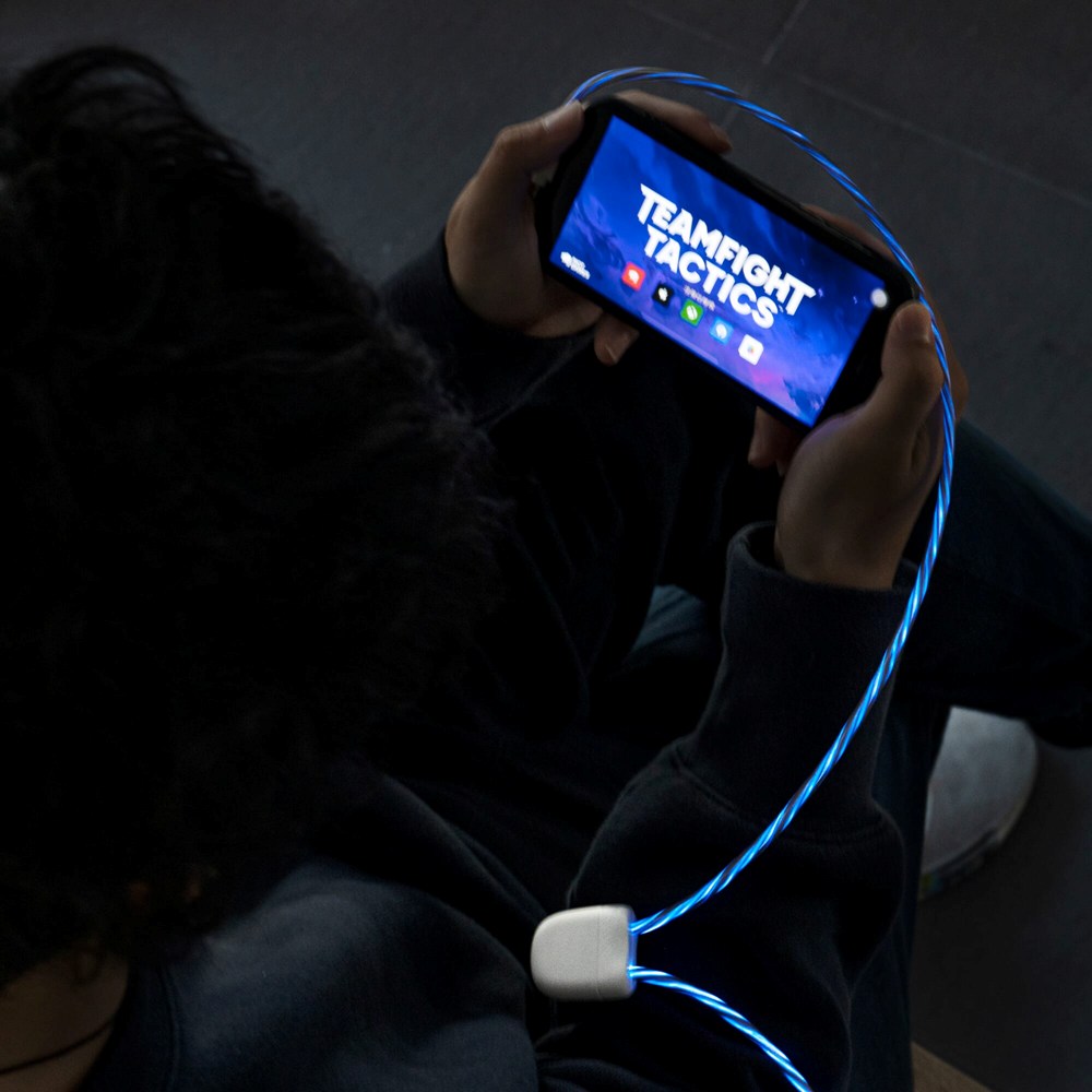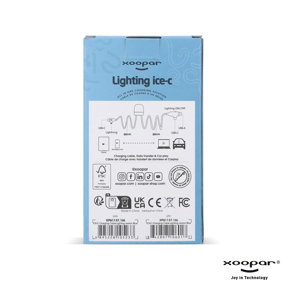 Die Xoopar Light up Ladekabel ist 2x 50cm lang, perfekt für nahtloses Laden und CarPlay-Funktionalität. Dualer Ein-/Ausgang, bis zu 27W Schnellladen. LED-Geschwindigkeit zeigt die Ladezeit an. Aus recyceltem Kunststoff.