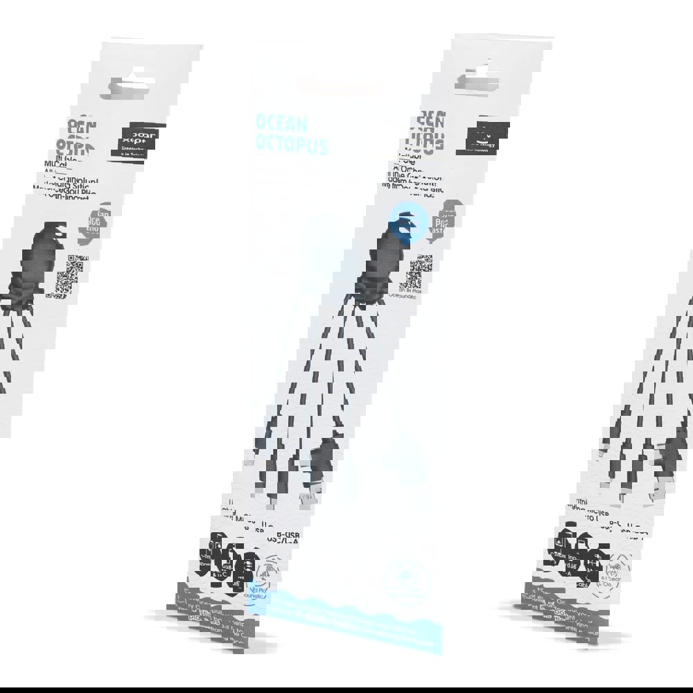 Das Eco Octopus Ladekabel ist aus ozeangebundenem Kunststoff hergestellt. Mit zwei (USB-A &... mehr