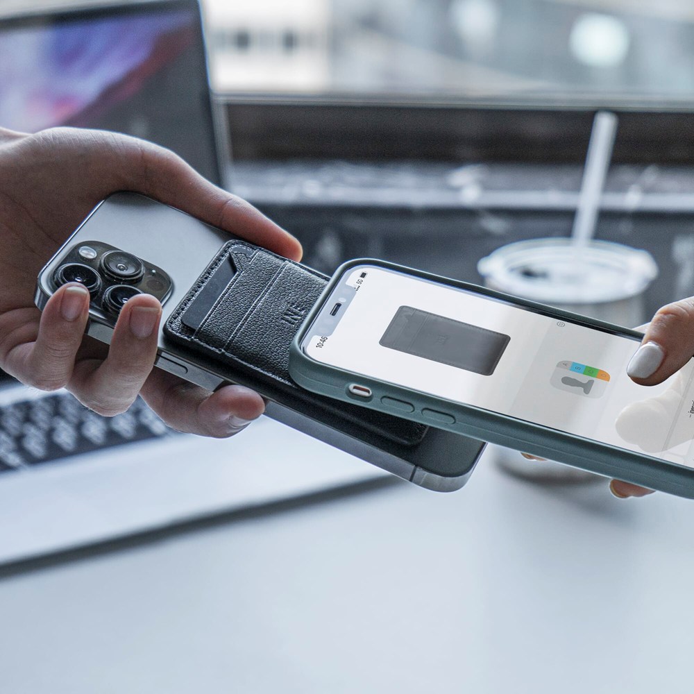 Magnetische Rückseite, kompatibel mit der MagSafe-Reihe von Apple. Digitale Visitenkarte, kompatibel mit iPhone und Android ohne Apps. RFID-Blockiersystem zum Schutz persönlicher Daten vor Skimmern.