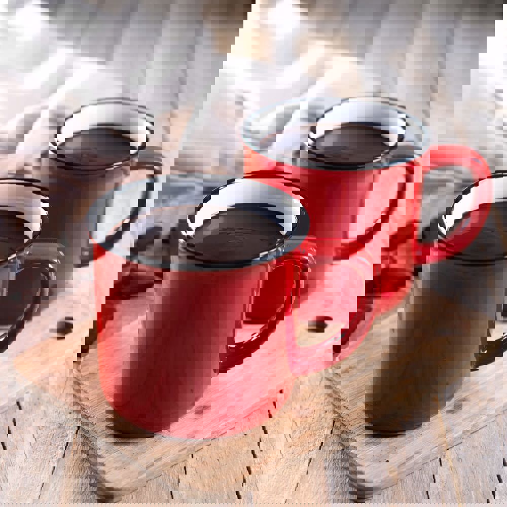Dieser Emaille-ähnliche Keramikbecher vereint Vintage-Charme mit lebendigen Farben. Perfekt für Kaffee, Tee oder jedes heiße Getränk, er verfügt über ein klassisches Design mit glänzendem Finish und einem schwarzen Rand, der das Wesen traditioneller Emaille-Tassen einfängt. Ideal für Zuhause oder Büro, verleiht er jeder Sammlung zeitlosen Stil.