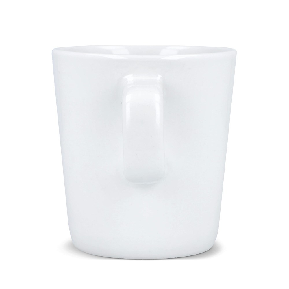 Stapelbarer, konischer Porzellanbecher mit eckigem Henkel. Ideal für Kaffeepad-Maschinen.