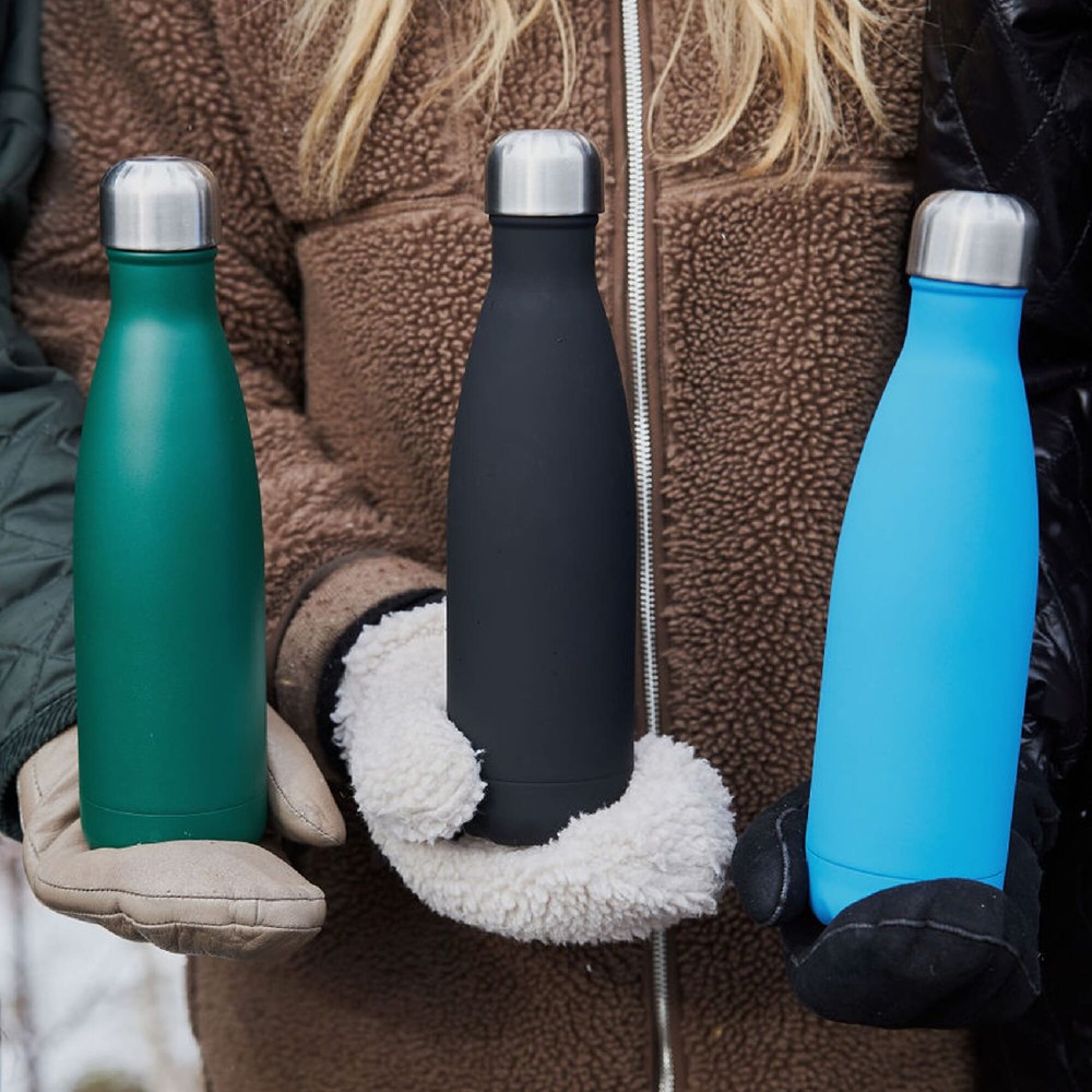Die stilvollste Flasche von Sagaform mit mattem Finish.. Die fortschrittliche Vakuumkonstruktion mit zwei Stahlwänden und einer Kupferbeschichtung sorgt für eine hervorragende Isolierung ohne Kondensation. Die Flasche kann Getränke bis zu 24 Stunden lang eiskalt oder bis zu 12 Stunden lang heiß halten.