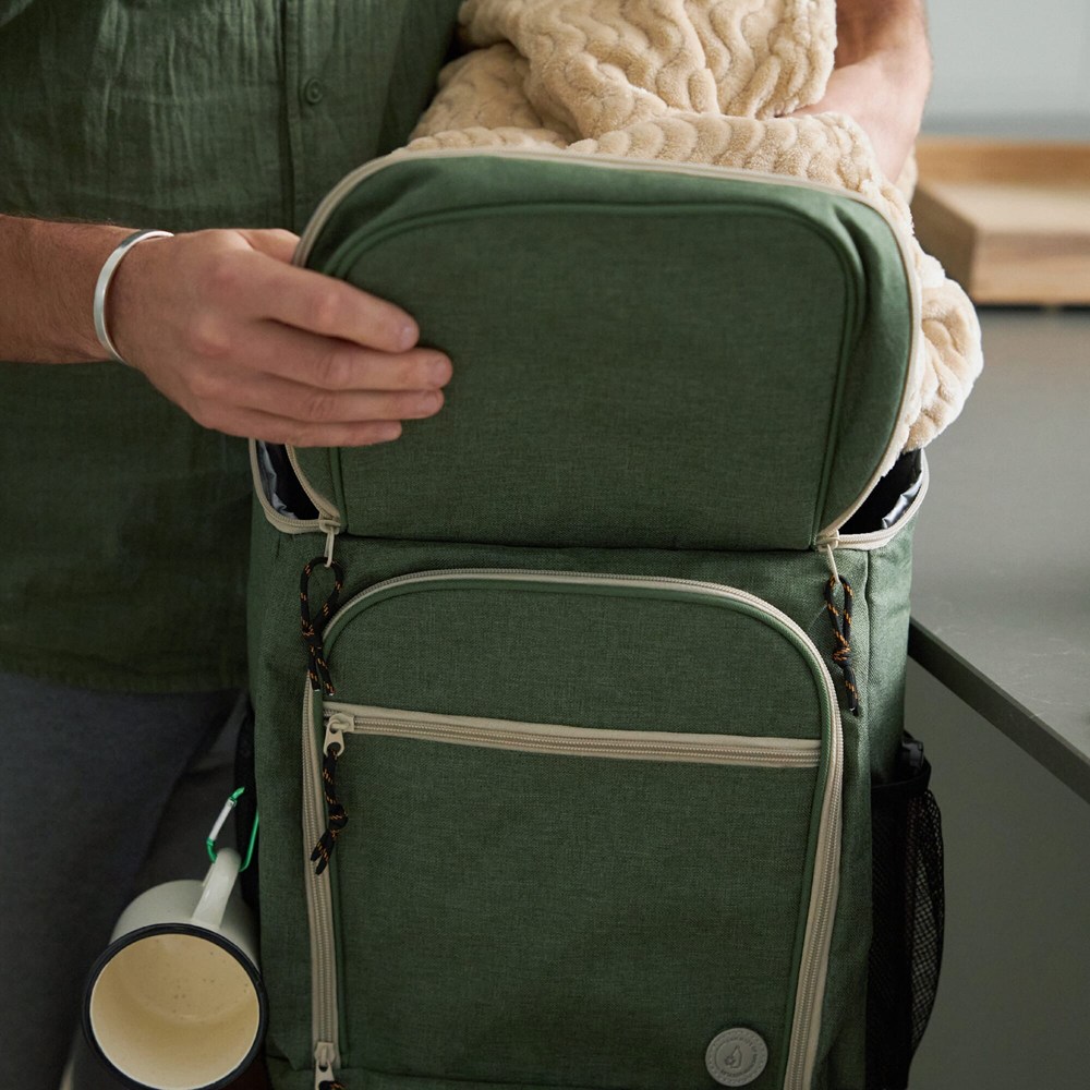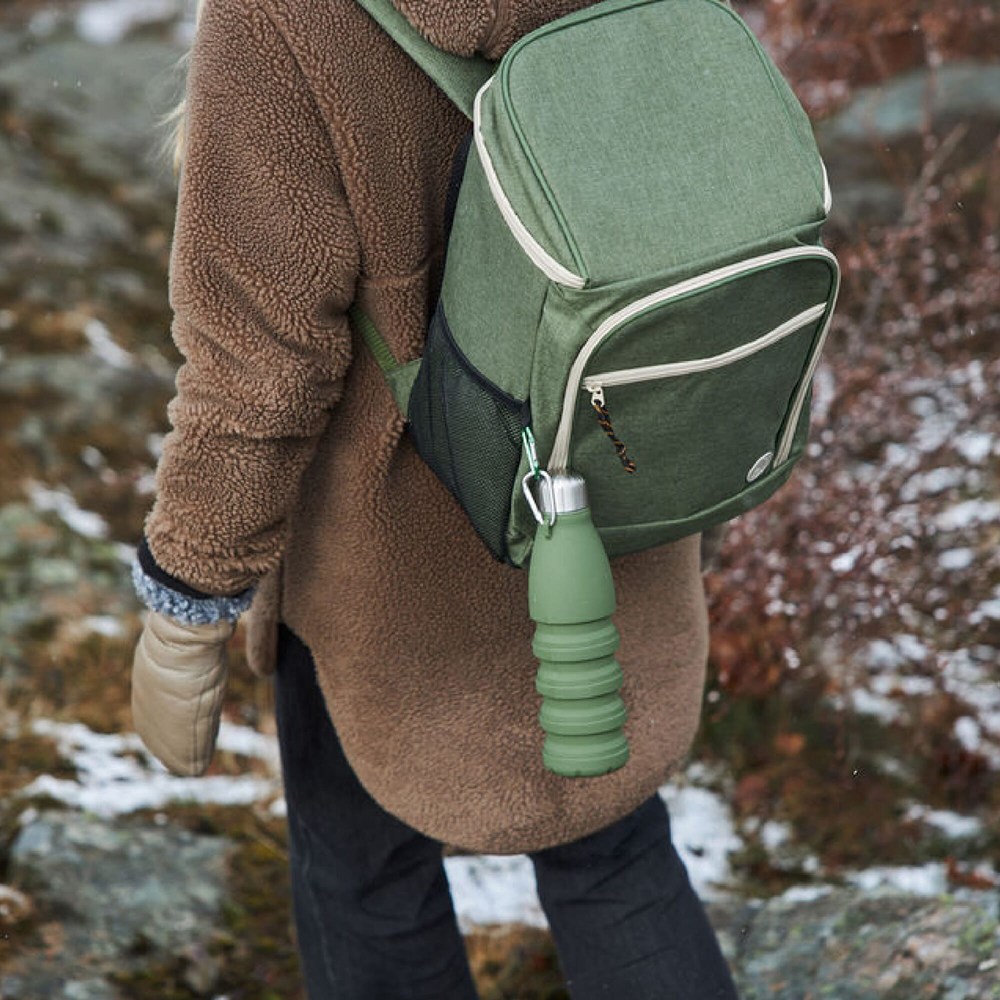 Ein wirklich luxuriöser und sportlich cooler Rucksack in grünem rPET-Material aus der Sagaform-Serie City rPET. Der Rucksack hat viele neue und tolle Details, die ihn in Wald und Feld noch nützlicher machen. Zwei Außentaschen, Netztasche an den Seiten, Karabiner zum Verstauen eines Bechers oder anderer Gegenstände, Innengurte, verbesserte Rückenpartie und verstellbare Schultergurte. Reißverschlüsse und gerippte Schnüre sind stilvolle Details in Kontrastfarben. Der Transport von Kühlgut war noch nie so einfach.