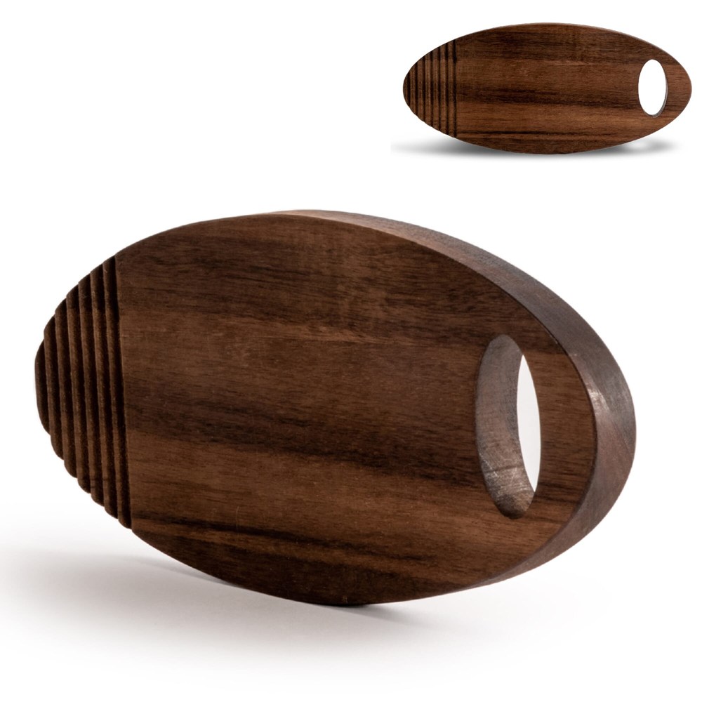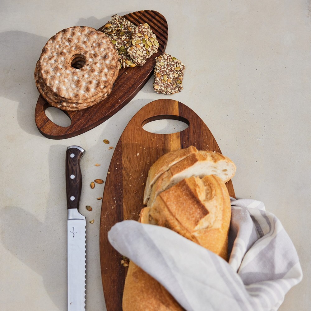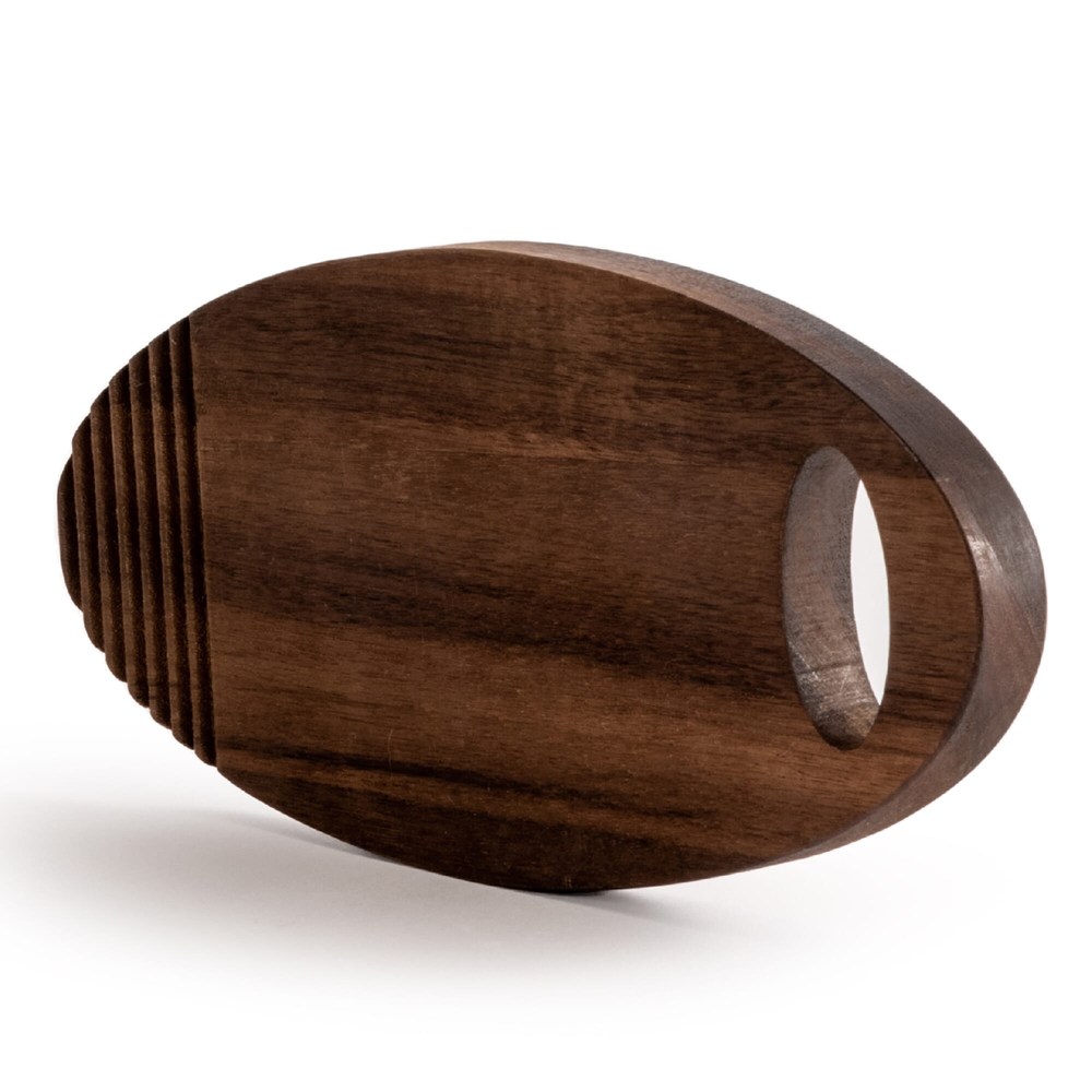 Dieses kleine Schneidebrett von Ante hat eine auffällige Form. Das ovale Modell hat an einem Ende ausgeschnittene Streifen und ist aus dunklem, robustem (FSC) Akazienholz gefertigt. Ante ist auch sehr praktisch und schön, wenn es auf dem Tisch steht. Das Schneidebrett ist handgefertigt und weist kleine Unterschiede in Form und Farbe auf, die man nur bei handgefertigten Produkten findet.