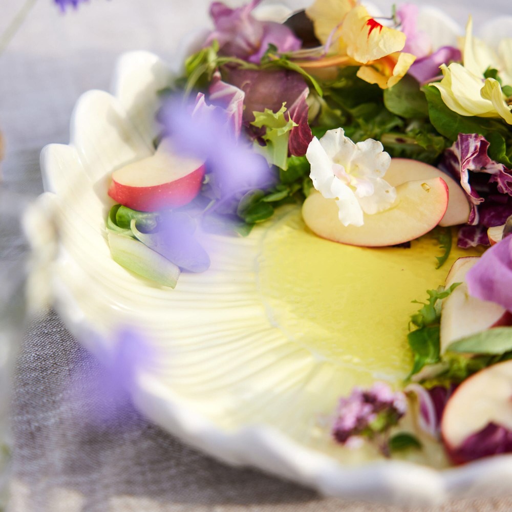 Bringen Sie frischen Wind auf den Tisch mit den schönen Designtellern Dagny. Inspiriert von den schönen Blütenblättern des Gänseblümchens wird der tiefe Teller Dagny (medium) zu einer schönen Ergänzung auf dem Tisch, in seiner ganzen Schlichtheit oder als Servierplatte. Eine wunderbare Ergänzung zu Ihrem Alltagsporzellan.