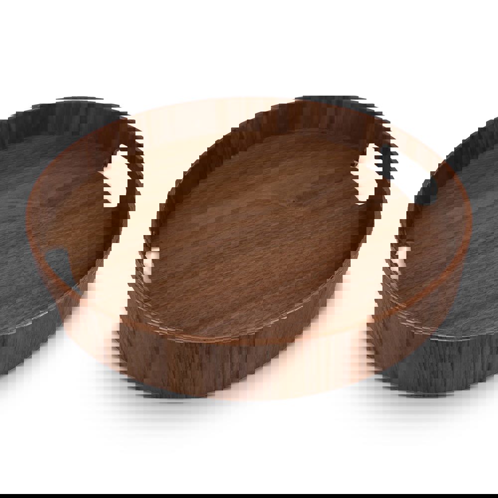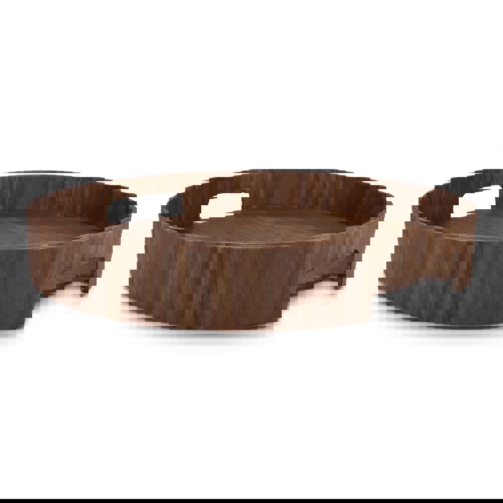 Das Hanna-Tablett von Sagaform aus zertifiziertem Pappel- und Nussbaumholz vereint Langlebigkeit mit natürlicher Eleganz. Integrierte Griffe sorgen für einfaches Tragen, ideal zum Servieren von Getränken oder Snacks zu Hause oder im Büro. Erhältlich in Schwarz oder Braun, geliefert in einer eleganten Geschenkbox.