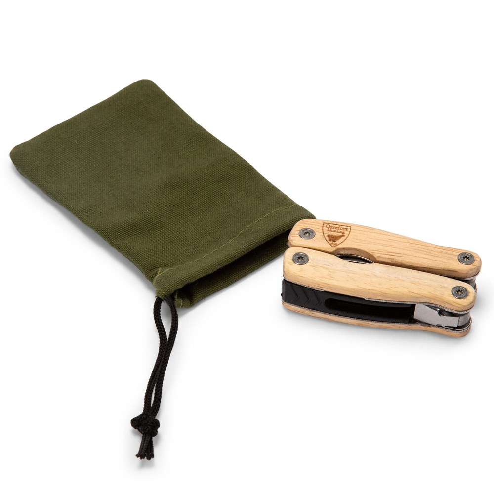Ein kleines und praktisches Multi-Tool von Orrefors Hunting. Klein und flexibel zum Mitnehmen in der Tasche oder zum Tragen am Gürtel mit der mitgelieferten Nylontasche. Enthält eine Zange, 4 verschiedene Schraubendreher, einen Flaschenöffner, ein gezacktes Messer, eine Messerklinge, eine Nagelschere und eine Nagelfeile. Wird in einer eleganten Pappschachtel geliefert. Die Produkte von Orrefors Hunting sind solide und robuste Qualitätsprodukte, die Sie jederzeit und überall einsetzen können.