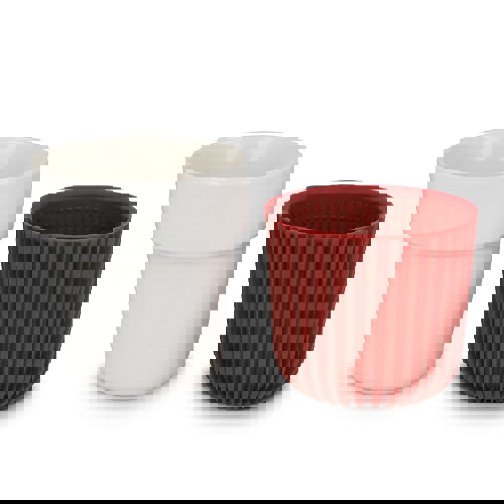 Der InSideOut Premium-Becher Fjord aus Bone China hat eine exklusive gerippte Silikonhülle, die isoliert und schützt. Von Andy Cartwright entworfen, strahlt er Eleganz und Luxus aus. Passend für die meisten Kaffeemaschinen, spülmaschinenfest und ideal für den täglichen Gebrauch.