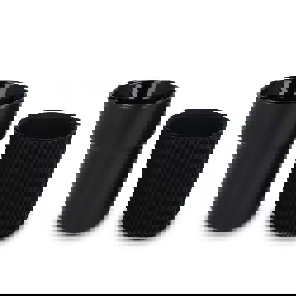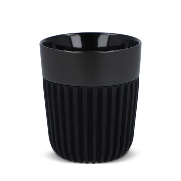 Der InSideOut All Black Premium-Becher Fjord aus Bone China hat eine exklusive gerippte Silikonhülle, die isoliert und schützt. Von Andy Cartwright entworfen, verkörpert er Eleganz und Luxus. Passend für die meisten Kaffeemaschinen, spülmaschinenfest und perfekt für den täglichen Gebrauch.