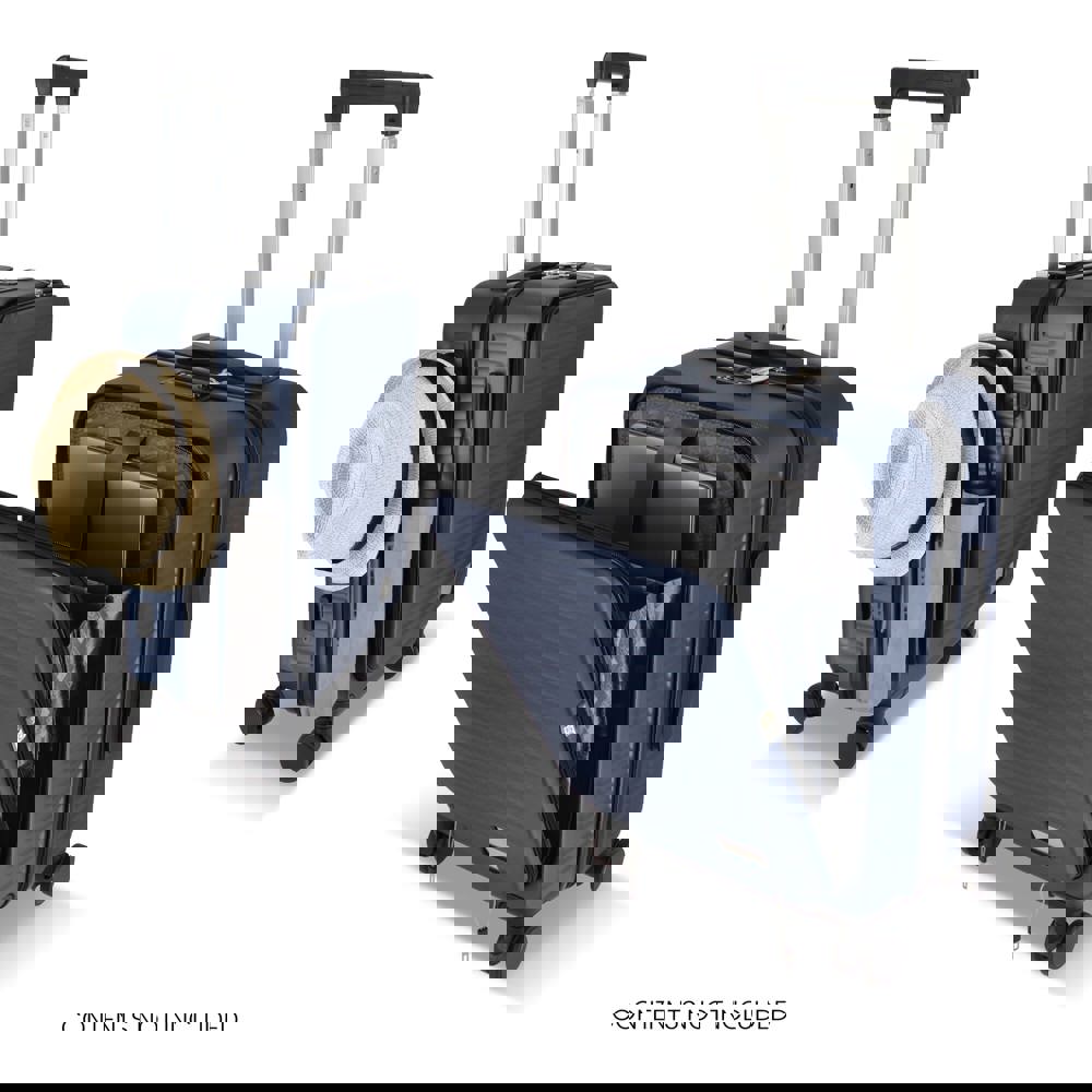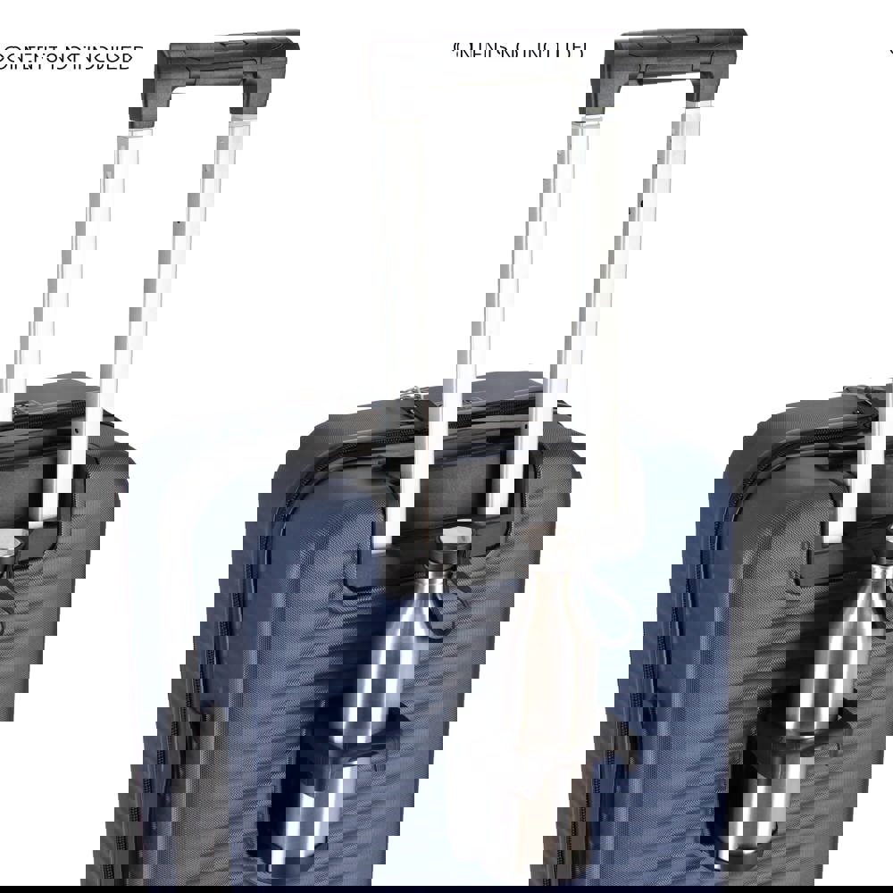 Der Rulla Kabinenkoffer von InSideOut bietet Komfort beim Reisen: vier Lenkrollen, TSA-Zahlenschloss, Handyhalterung im Griff, integrierter Getränkehalter hinten und zwei seitliche Haken für Tasche oder Nackenkissen. Im vorderen Fach eine gepolsterte Laptoptasche für Geräte bis 15,6 Zoll.