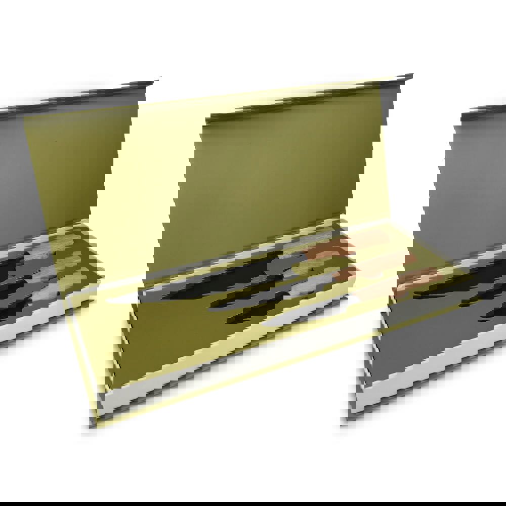 Das InSideOut Ravn Essential Messerset vereint Eleganz und Funktionalität. Dieses Set enthält ein Schälmesser (12 cm), ein Universalmesser (23,5 cm) und ein Kochmesser (32 cm) und ist eine stilvolle Ergänzung für jede Küche. Mit seinen markanten schwarzen Klingen und den eleganten Griffen aus FSC-zertifiziertem Buchenholz bietet das Set einen modernen Look. Sowohl die Griffe als auch die Klingen können mit einer Lasergravur versehen werden. Verpackt in einer luxuriösen Geschenkbox, perfekt als Geschenk oder für den persönlichen Gebrauch.
