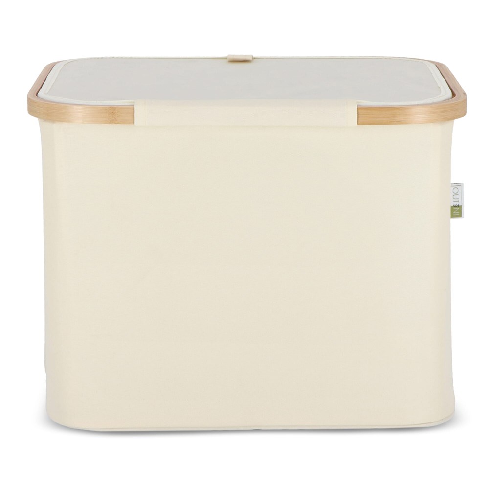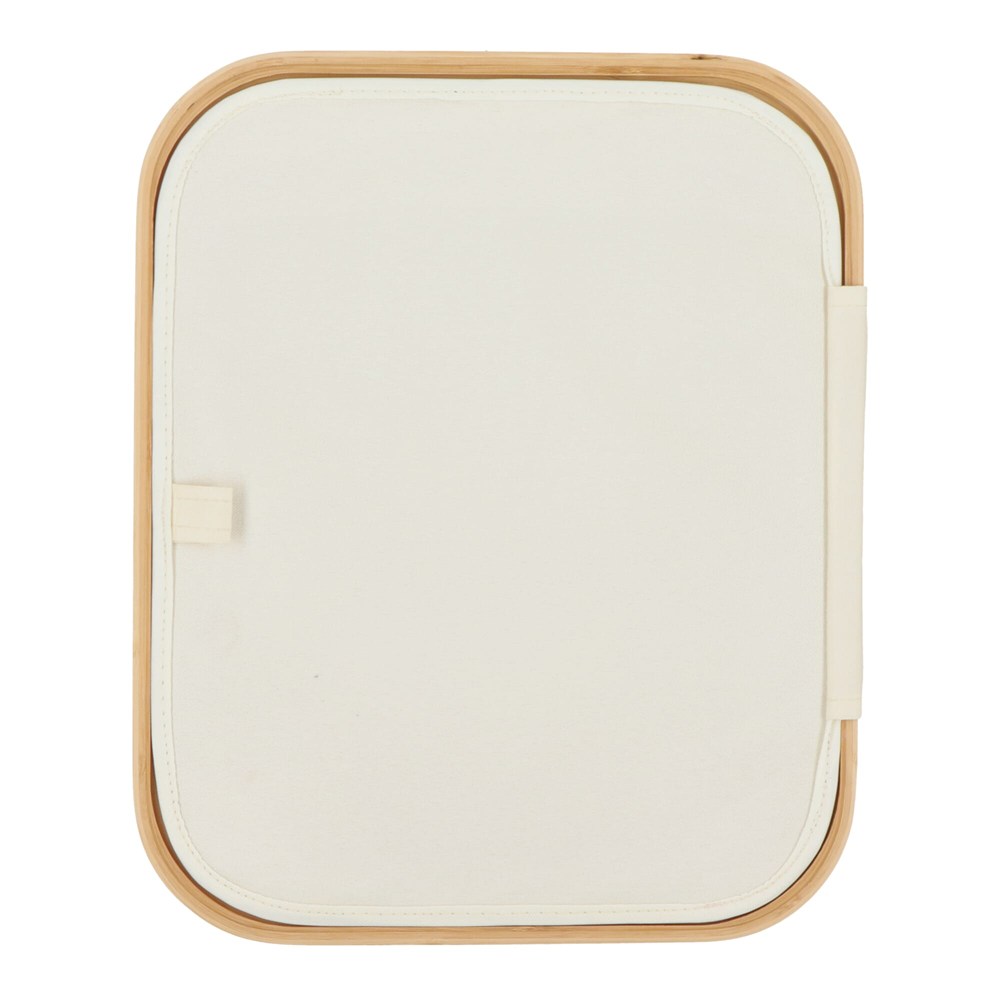 Dieser faltbare Korb Sogne von InSideOut ist eine stilvolle und nachhaltige Aufbewahrungslösung aus recycelten Materialien und Bambus. Das moderne Design passt perfekt in jedes Interieur und sorgt dafür, dass jeder Raum ordentlich und sauber bleibt. Der Korb hat einen Deckel und ist sowohl faltbar als auch stapelbar, was ihn funktional und platzsparend macht. Jede Ecke des Korbs ist mit textilummantelten Stützen verstärkt, die einfach unter dem Bambusrahmen mit Klettverschluss befestigt werden können. Dank dieses cleveren Systems kann der Korb schnell gefaltet und entfaltet werden, was ihn einfach zu lagern und ideal für den täglichen Gebrauch macht. Kurz gesagt, der faltbare Korb Sogne vereint Nachhaltigkeit, Stil und Praktikabilität in einem. Es gibt Platz für einen Druck auf dem Deckel, sodass Ihr Logo immer sichtbar ist.