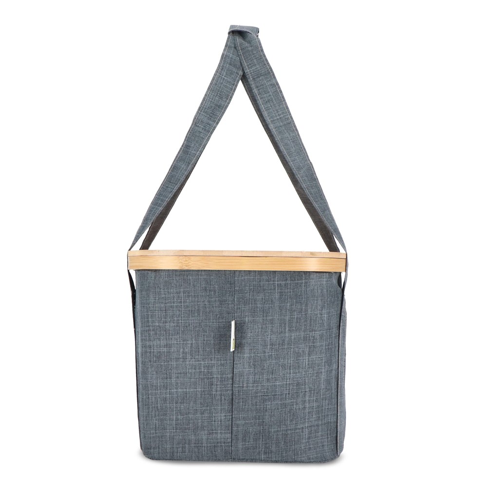 Der faltbare (Kühl-)Korb Sogne von InSideOut ist mehr als eine stilvolle Aufbewahrungslösung: Er ist eine vielseitige Kühltasche, ideal für Outdoor-Aktivitäten. Hergestellt aus recycelten Materialien und Bambus, bietet dieser Sogne auch praktische Funktionalität. Im Inneren befindet sich eine passende Kühltasche mit Griff und Isolierfolie, so dass der Korb auch als Kühltasche verwendet werden kann, um Speisen und Getränke kühl zu halten. Der Korb hat einen Deckel aus Bambus, der auch als Schneidebrett dienen kann, und ist mit praktischen Vorder- und Rückentaschen für zusätzlichen Stauraum ausgestattet. Dank der stabilen Griffe können Sie den Korb überallhin mitnehmen, mit oder ohne Kühltasche. Sowohl der Korb als auch die Kühltasche sind faltbar, was bei Nichtgebrauch Platz spart. Sowohl die Vordertasche als auch der Bambusdeckel bieten Platz für den Aufdruck oder die Gravur eines Logos. Kurzum, Sogne vereint Stil, Funktionalität und Multifunktionalität in einem intelligenten und nachhaltigen Design.