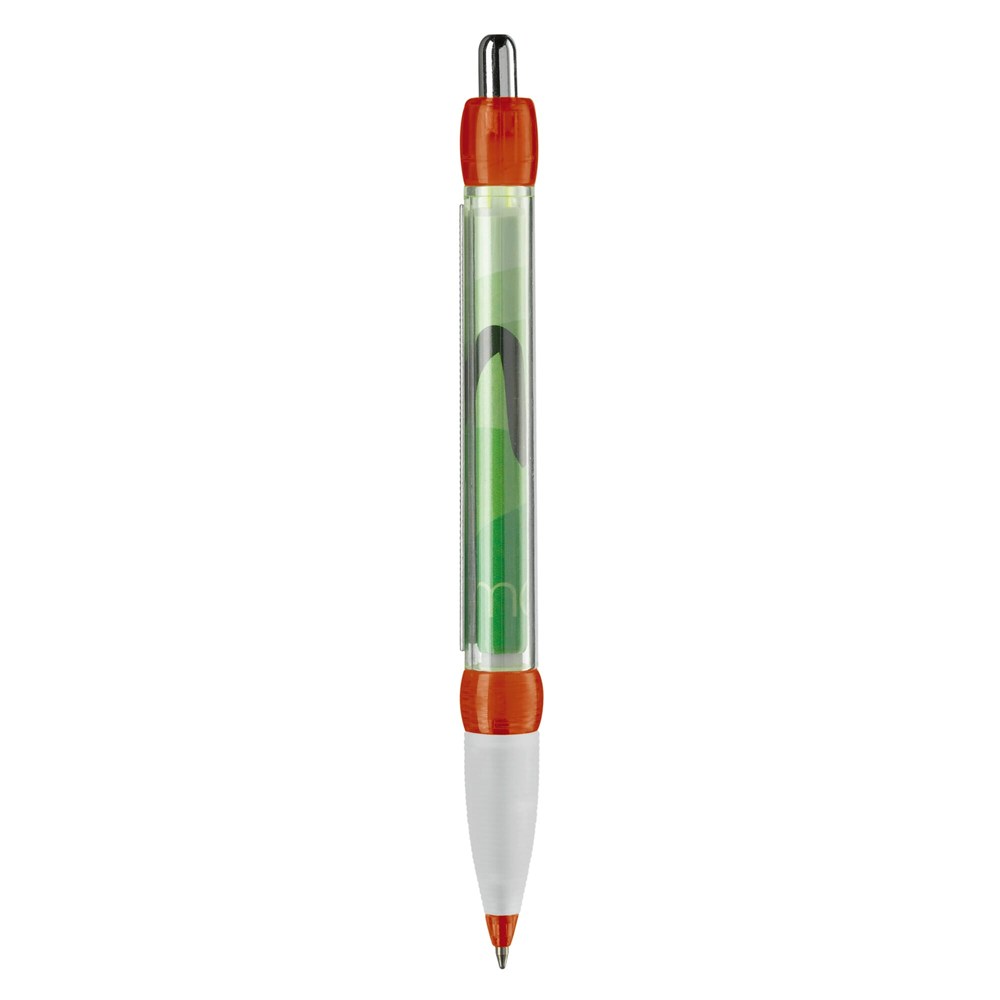 Transparenter Kugelschreiber mit Gummimanschette und integriertem Werbebanner, beidseitig in... mehr