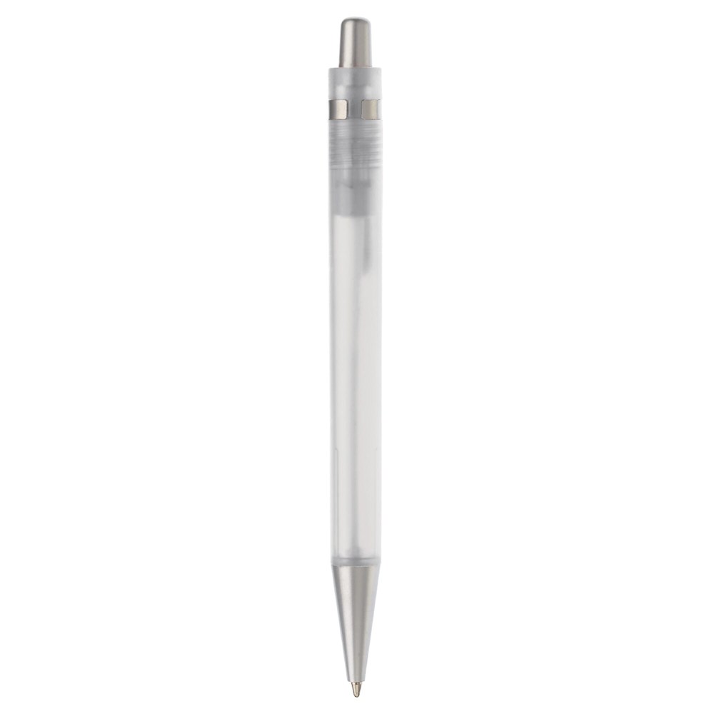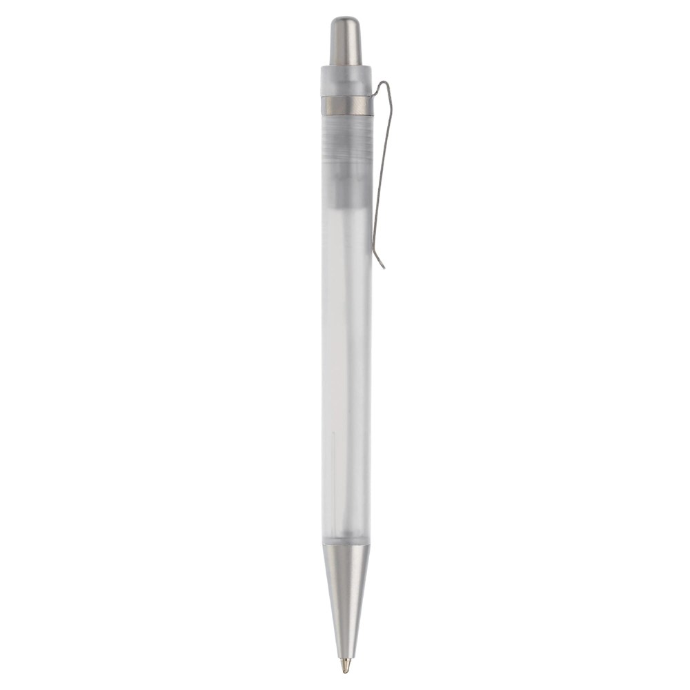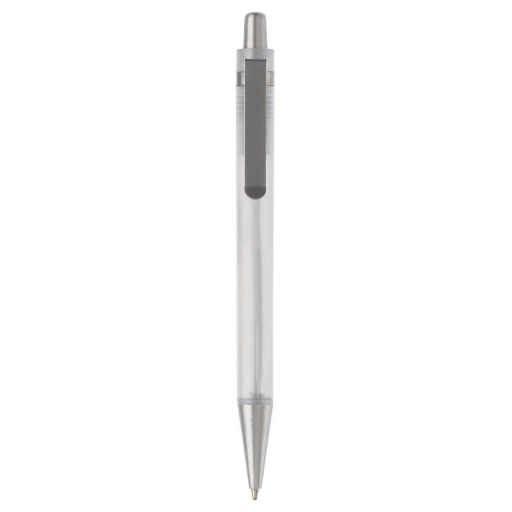 Transparenter Kunststoffkugelschreiber mit Metallclip und blauschreibender mit X20-Mine.