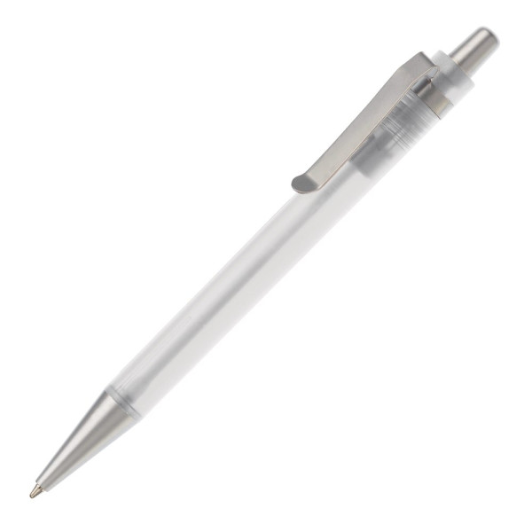 Transparenter Kunststoffkugelschreiber mit Metallclip und blauschreibender mit X20-Mine. mehr