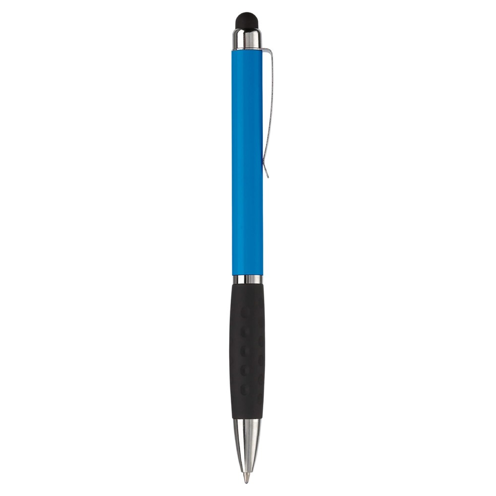 Kunststoff Touch Screen Pen-Toppoint Design. Metallclip und schwarze Gummimanschette. Drehmechanik. Blauschreibend.