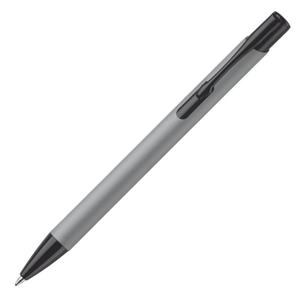 Gummierter, matter Metall Kugelschreiber, in trendigen Farben und mit Soft-Touch. Durch den gummierten Look ist dies ein trendiges sachliches Geschenk. Blauschreibend.