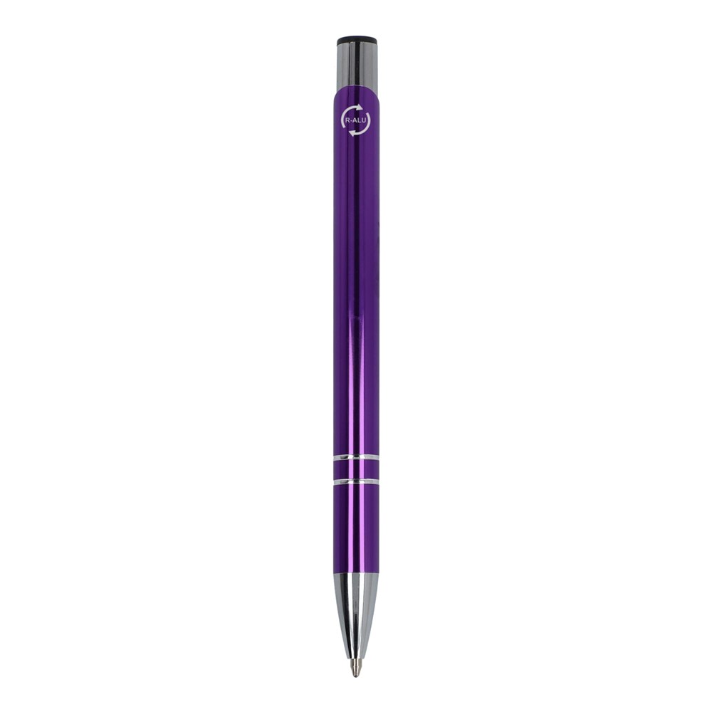 Die aus recyceltem Aluminium gefertigte Version unseres beliebten Alicante-Kugelschreibers mit glänzender Oberfläche; ein eleganter Aluminium-Kugelschreiber mit zwei Ringen im Korpus, die ihm eine besondere Note verleihen. Der Stift wird mit schwarzer Schreibtinte geliefert.