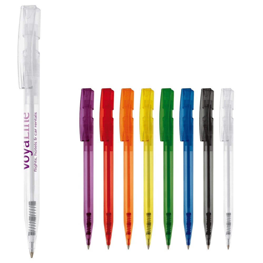 Kugelschreiber mit transparentem Schaft und Bogenclip designed by Toppoint. Made in Germany. Blauschreibende X20-Mine. Schreibleistung 2,5km.