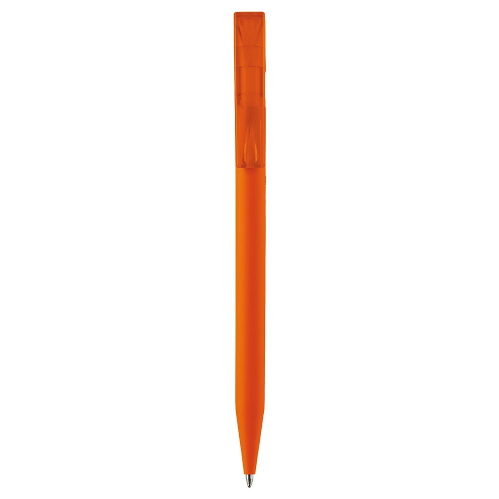 Beliebter Kugelschreiber im Toppoint-Design. Softtouch-Schaft und transparenter Clip. Dieser Kugelschreiber wird in Deutschland gefertigt und verfügt über eine X20-Mine. Minenfarbe blau. Schreibleistung 2,5km.
