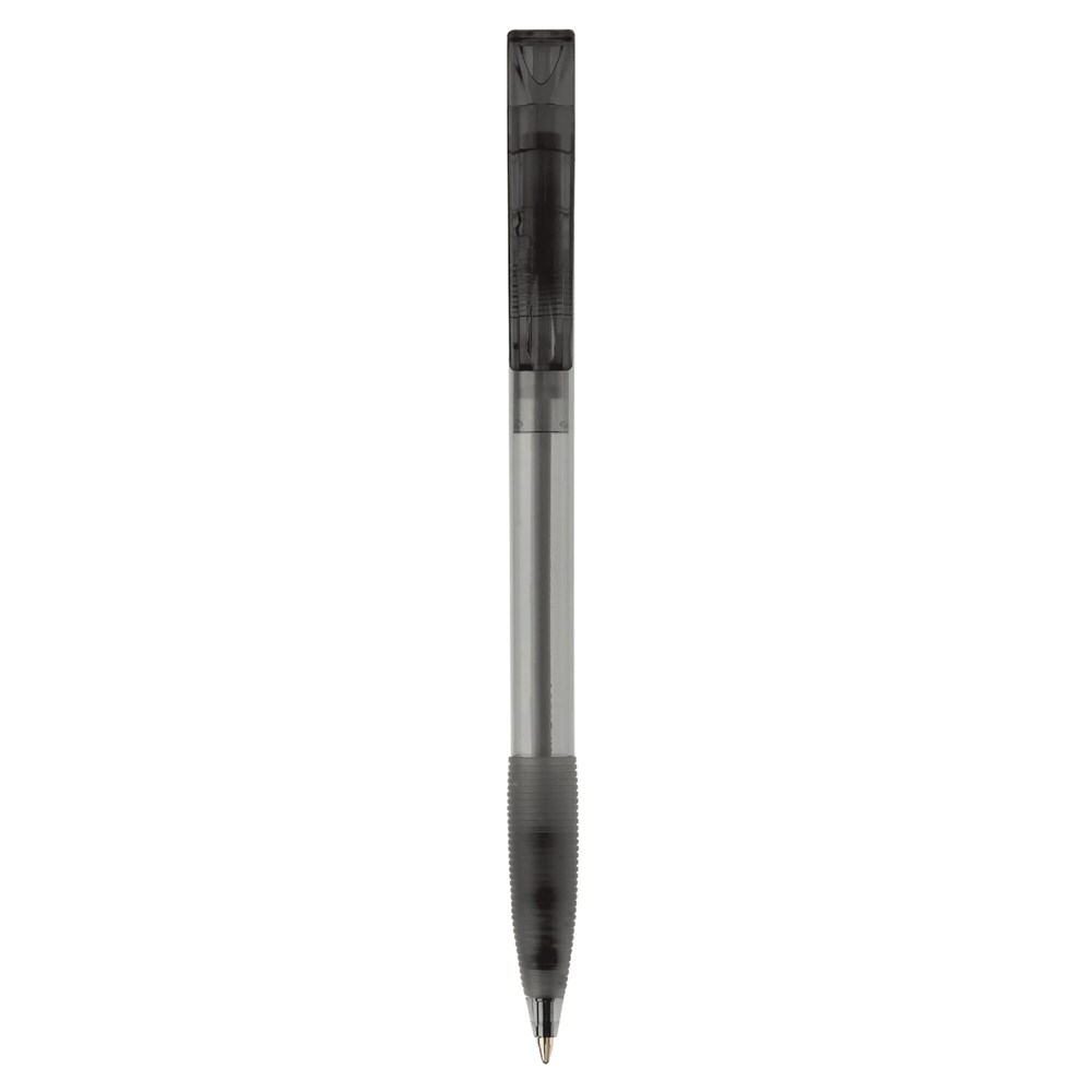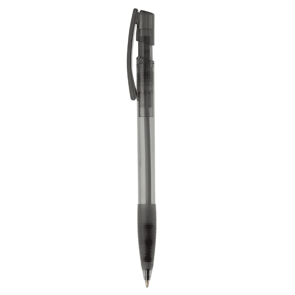 Kugelschreiber mit transparentem Schaft, Manschette und Bogenclip designed by Toppoint. Made in Germany. Blauschreibende X20-Mine. Schreibleistung 2,5km.