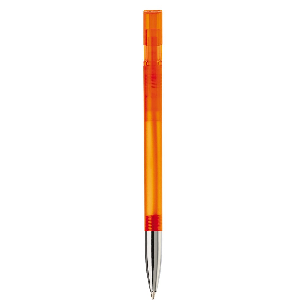 Kugelschreiber mit transparentem Schaft, Bogenclip und Metallspitze designed by Toppoint. Made in Germany. Blauschreibende X20-Mine mit einer Schreibleistung von 2,5km.