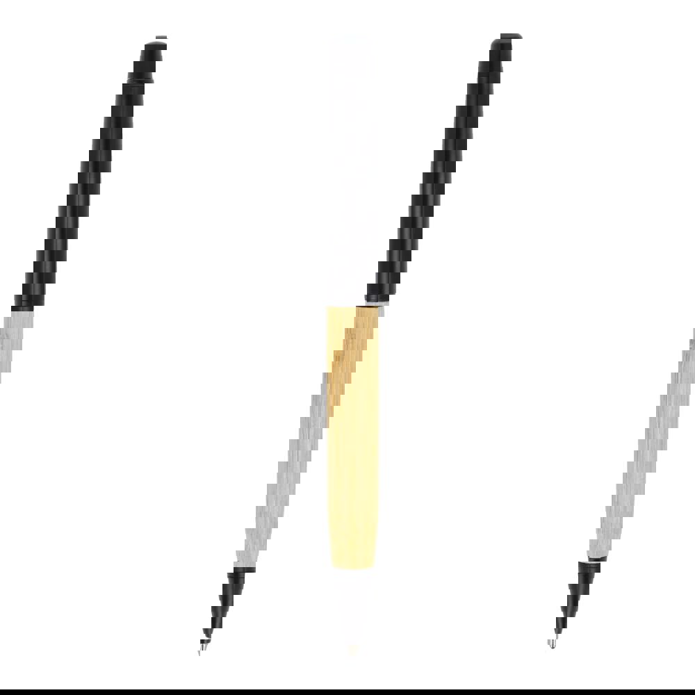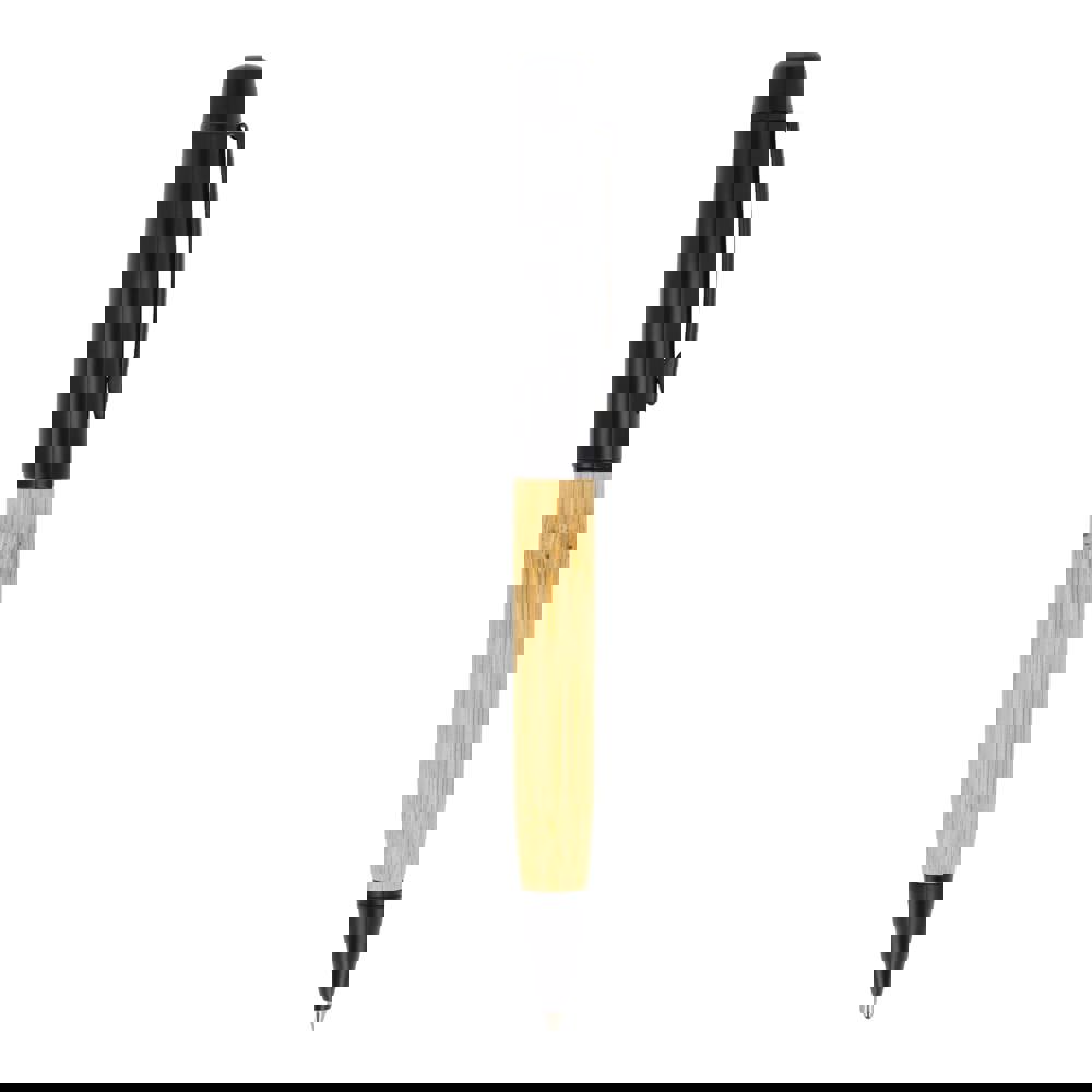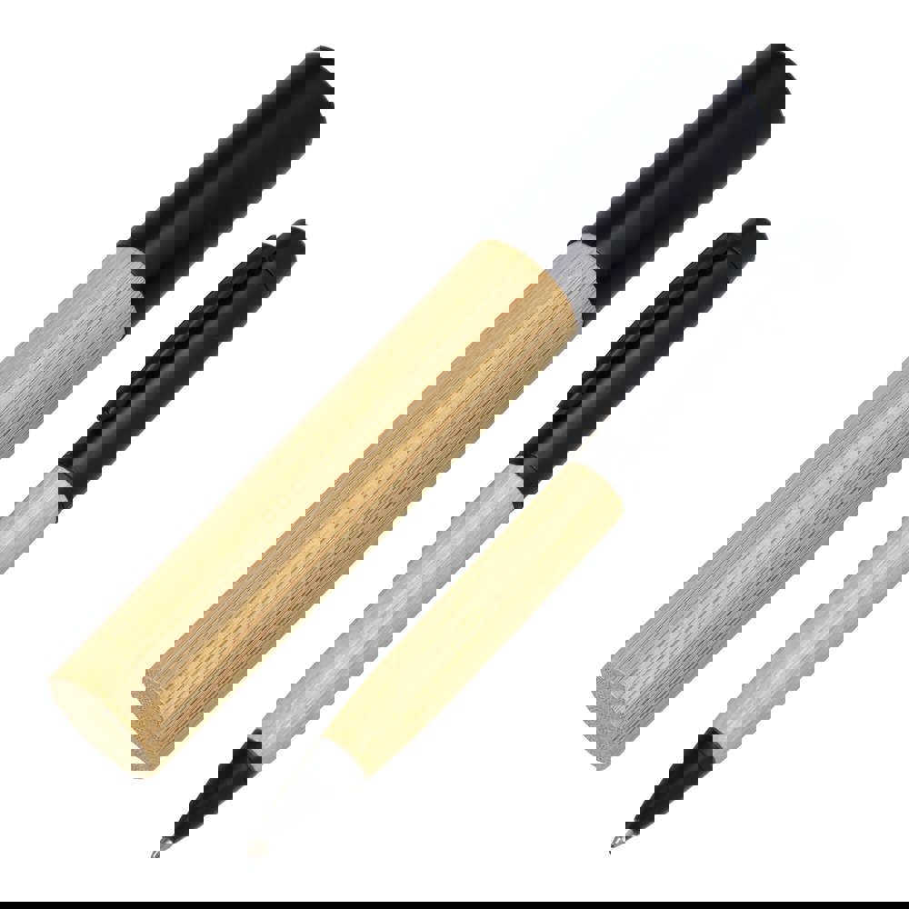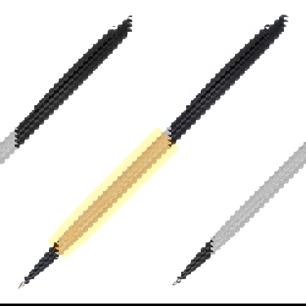 Metallkugelschreiber mit schwarzen Metallverzierungen und einem Schaft aus Bambus, elegant... mehr