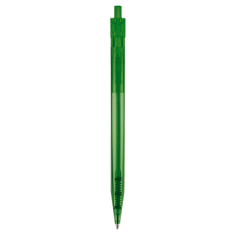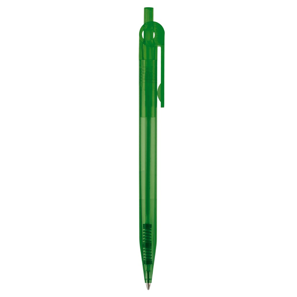 Kunststoff Toppoint Kugelschreiber mit flachem Clip. Made in Germany. Ausgestattet mit einer X20-Mine für 2,5km Schreibleistung. Mine blauschreibend. Transparent.