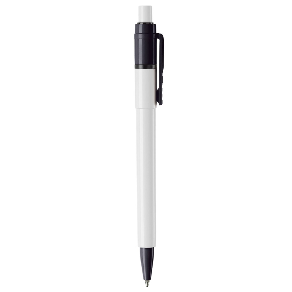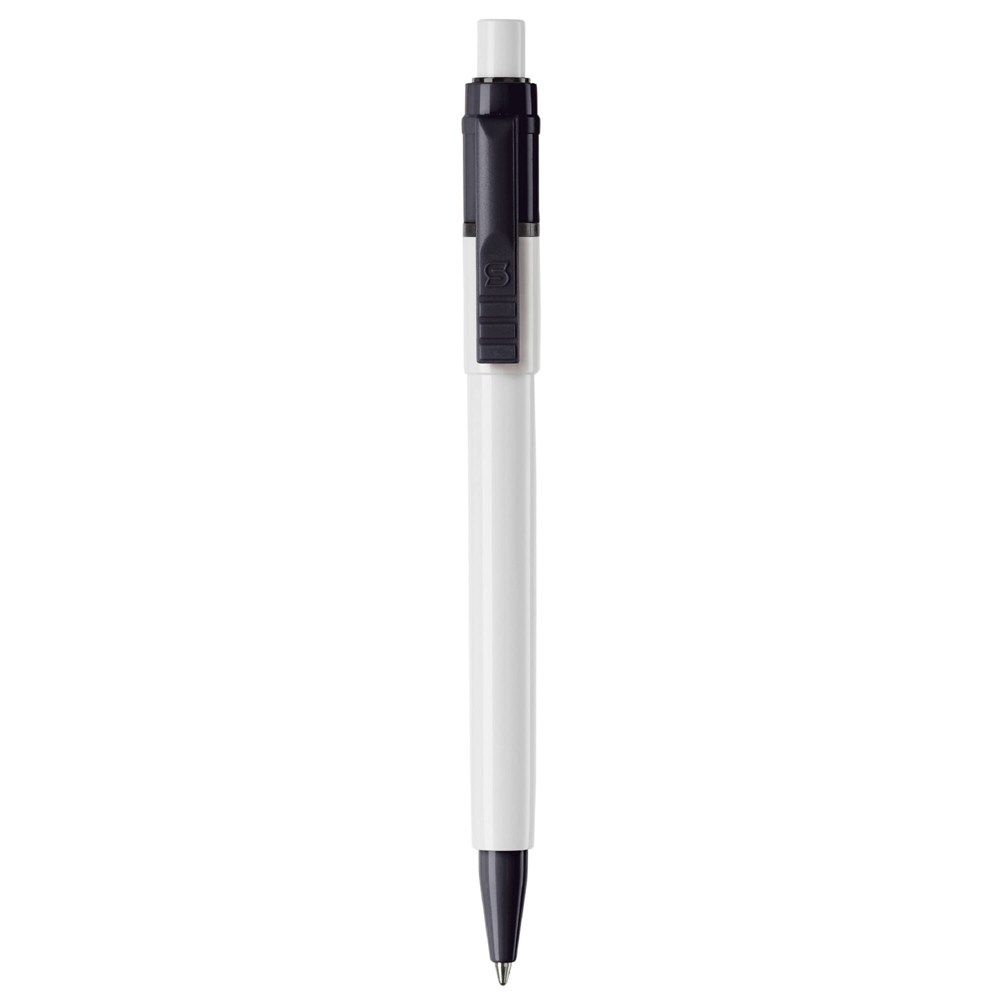 Der Hardcolour Kugelschreiber Baron-Color hat einen weißen Schaft und einen weißen Drücker sowie einen farbigen Clip und eine farbige Spitze. Die blauschreibende Mine ist eine synthetische Jumbo-Mine. Der Hardcolour Kugelschreiber besteht aus ABS und wird in Europa hergestellt. Ab einer Abnahmemenge von 5.000 Stück sind eigene Farbkombinationen möglich.
