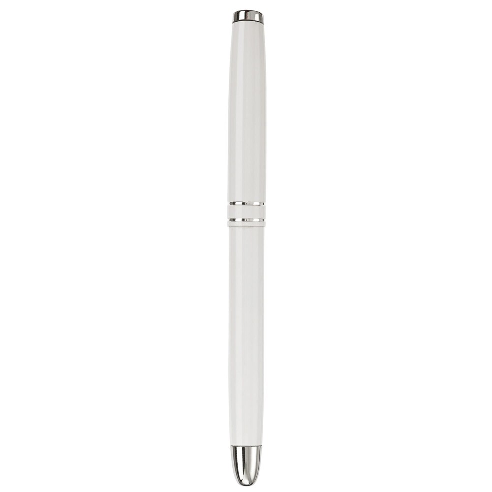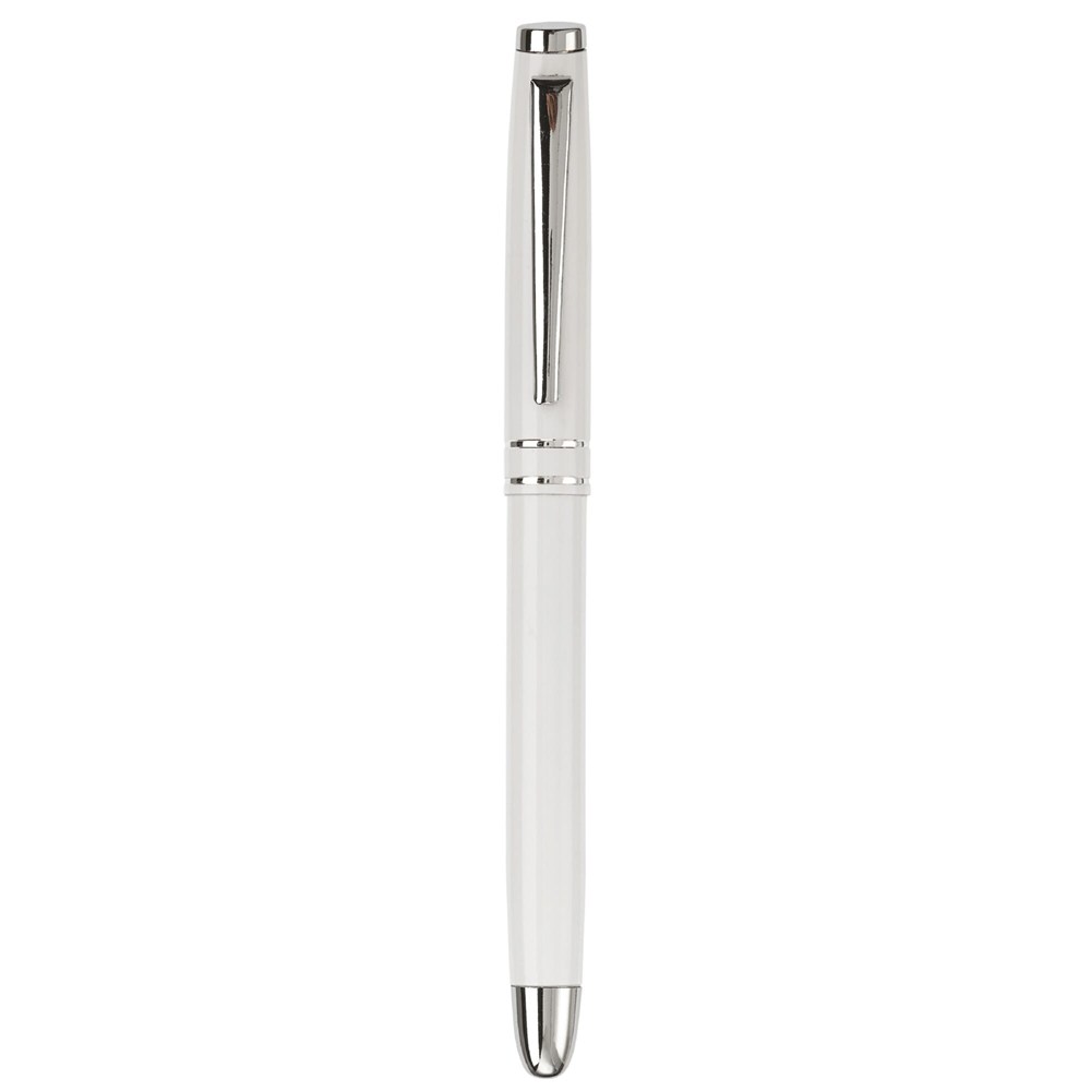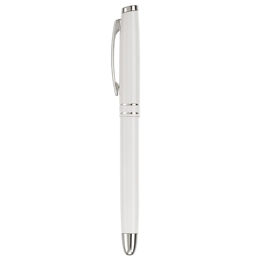 Metallschreibset bestehend aus einem Kugelschreiber mit Drehmechanik und einem Rollerball mit Kappe. Versehen mit einem feinen Streifendesign. Blauschreibend.