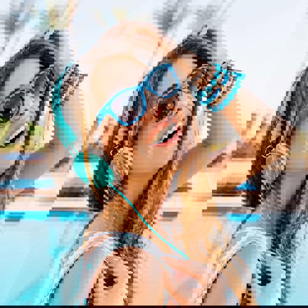 Zeitgenössische Sonnenbrille mit UV400-Filter, für einen modischen Look. Druck auf einem oder beiden Bügeln möglich.