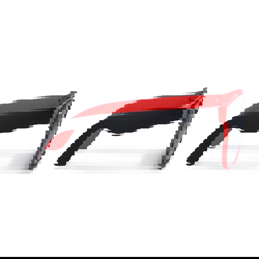 Stylische Sonnenbrille mit trendigem zweifarbigem Rahmen und auffälligen Spiegelgläsern. UV400-Filter. Eine moderne Wahl für auffällige Promotions und Events.