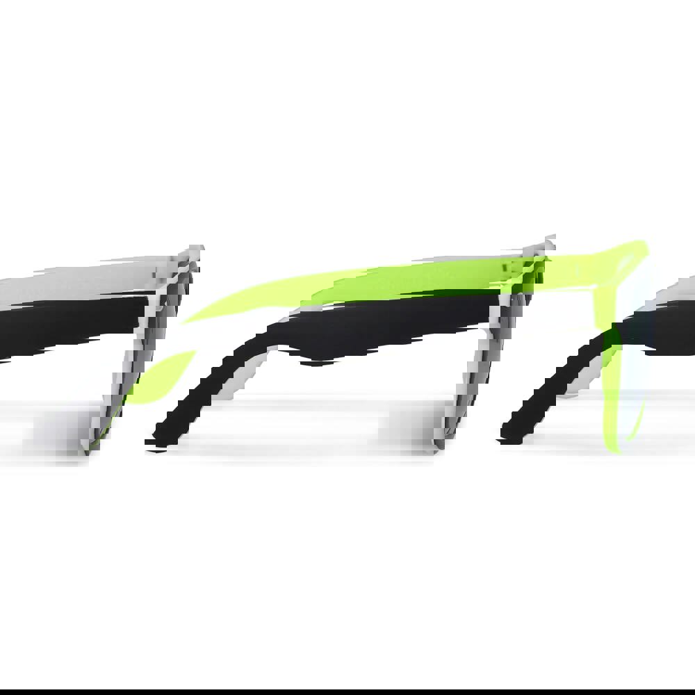Stylische Sonnenbrille mit trendigem zweifarbigem Rahmen und auffälligen Spiegelgläsern. UV400-Filter. Eine moderne Wahl für auffällige Promotions und Events.