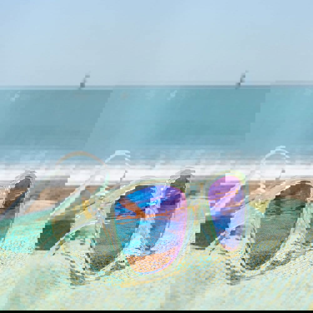 Ikonische Sonnenbrille mit transparentem Rahmen, die sowohl für Männer als auch für Frauen geeignet ist. Die Gläser sind mit einem UV400-Filter ausgestattet und schützen die Augen an hellen Sonnentagen.