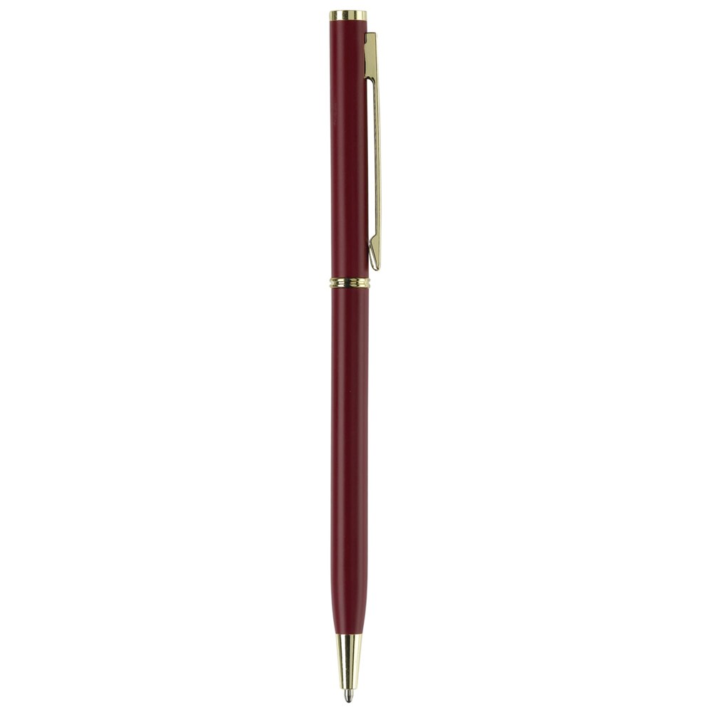 Dünner Metallkugelschreiber. Farbig matt mit goldfarbigen Teilen. Blauschreibende Metallmine. mehr