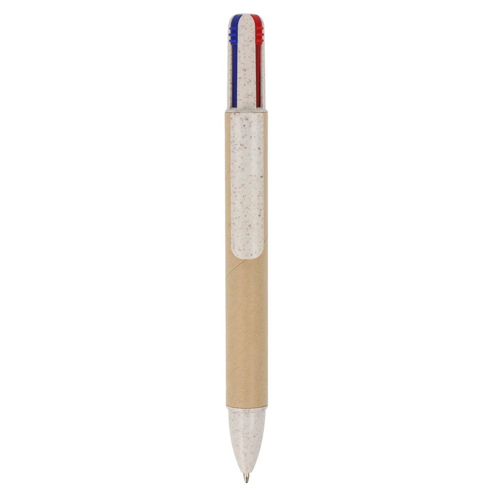 Wir präsentieren unseren Papier-Kugelschreiber mit vier Schreibfarben. Vielseitig und unterhaltsam – er vereint farbenfrohe Schreiboptionen in einem praktischen Werkzeug.